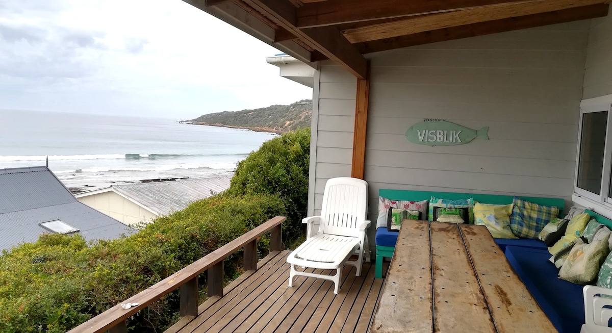 Məkanım Mossel körfəzindən təxminən 20 dəqiqəlik məsafədə və Corc hava limanından bir saatlıq məsafədə yerləşən mənzərəli Vleesbaai kəndindədir. Kottec qayaların üstündə yerləşir və bütöv çimərliyə və körfəzə fasiləsiz mənzərəsi var. Bu, cütlüklər və tək macərapərəstlər üçün yaxşıdır. Düz öz kilid qapıları ilə öz-özünə idarə olunur. Evin çimərliyə 300 m məsafədə ayaqyolu var. Şəhərdə bir ərzaq dükanı və təxminən 2 km məsafədə bir kafe var. Burada afrikalılar və ingilislər danışılır.
