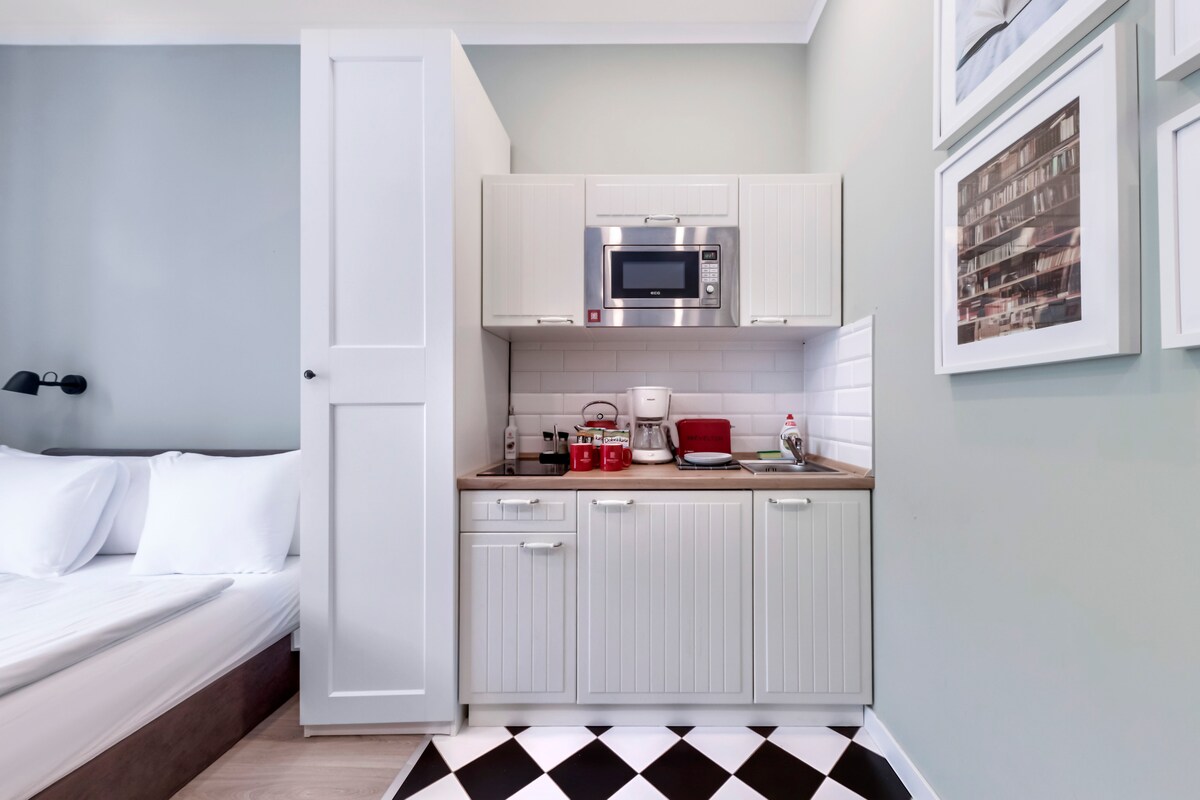 Bu rahat mənzildə dəbli ikinəfərlik çarpayı, komod və televizor, quraşdırılmış qarderob, oturma sahəsi, kiçik soyuducu və çay və qəhvə hazırlamaq üçün aksesuarları olan çaydan var. Vanna, tualet, teknik və çanağı olan hamam otağı. Otel dəsmalları, tualet ləvazimatları və fen də təmin edilir. Kondisioner və pulsuz Wi-Fi mövcuddur.