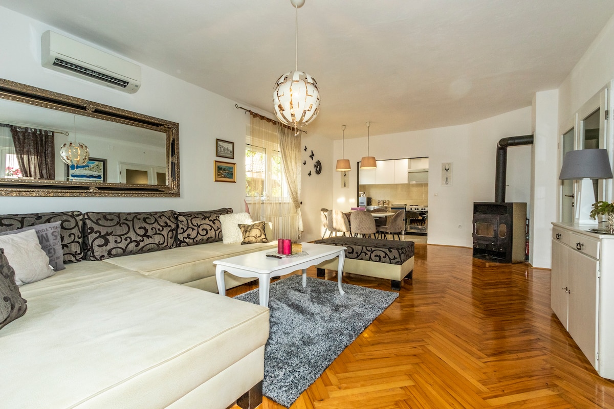 It’s an extremely bright and specious 4 star apartment for real hedonists. Everything is only few minutes away: beaches, centre, sport centre, ambulance, post office, bank, bars, restaurants etc. You can enjoy on our big terrace with a great view on the sea and old town or just cool yourselves, inside the apartment, using air conditions. Although, we do have WiFi, TV and satellite, don’t use it a lot, you can do that at home, rather spend time grilling some fishes on our, outside, barbecue.