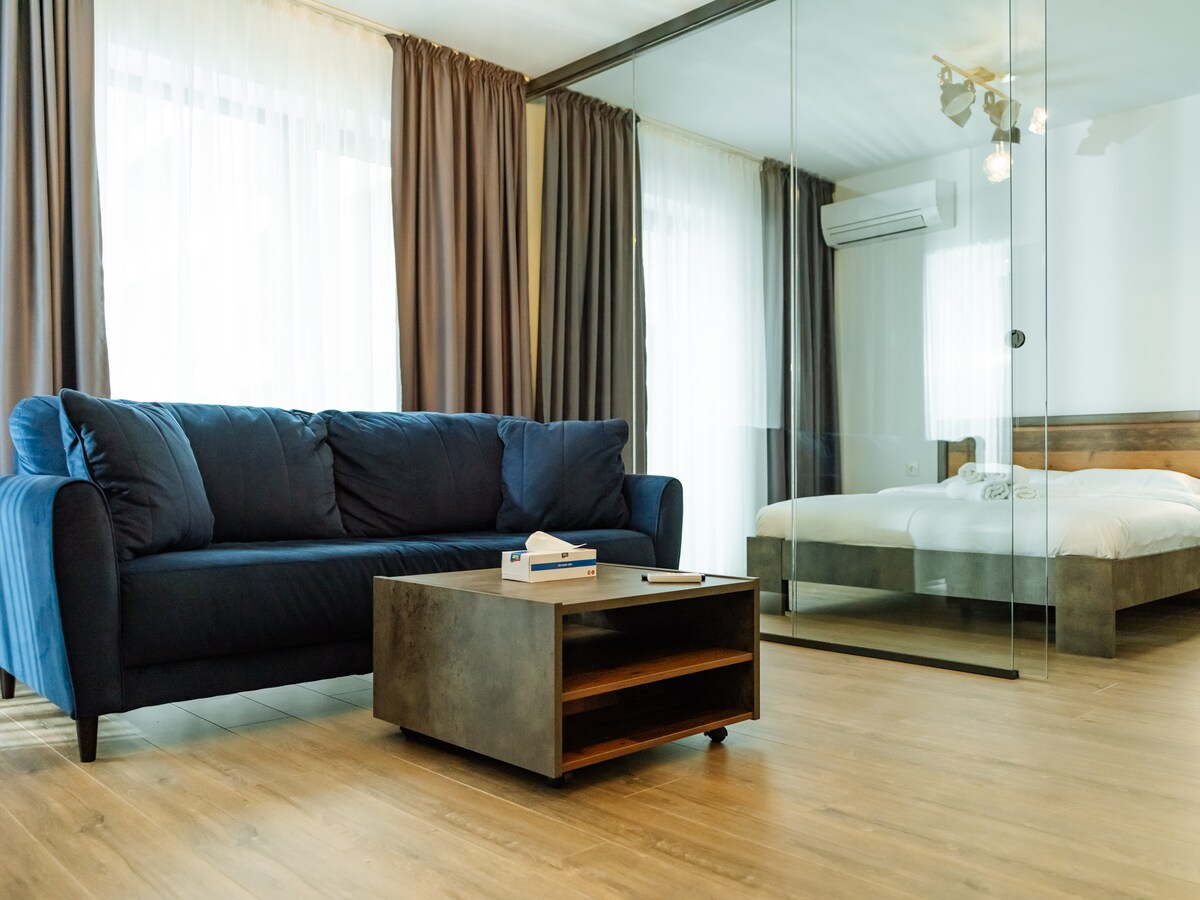 A refined retreat designed for both work and relaxation. Start your day with a fresh espresso and the soft glow of natural light. Stay productive in a quiet, dedicated workspace, then unwind with your favorite Netflix show in the evening. Plush bedding, a serene courtyard view, and seamless high-speed WiFi ensure a stress-free, premium stay. Whether you're here for business or leisure, comfort meets elegance in every detail. Book now and make Bucharest feel like home!