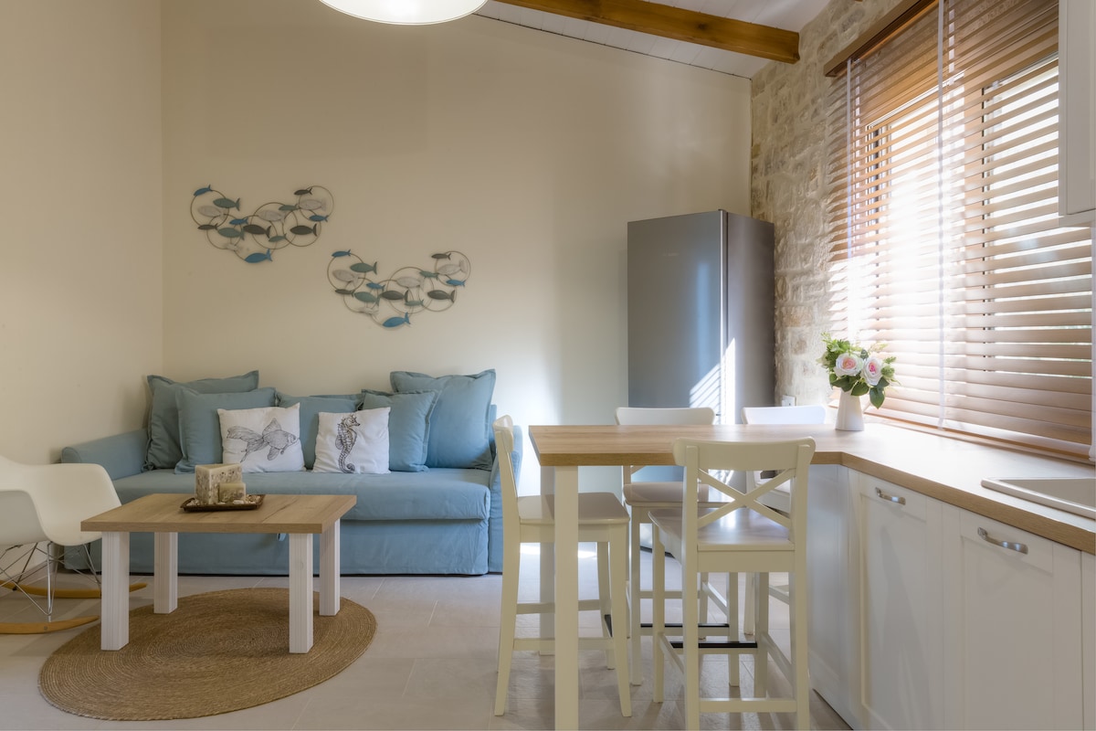 Evimiz Heraklion şəhərinin mərkəzinə yaxın sakit məhəllədə zərif və rahat mənzildir. Bütün avadanlıq və dekorasiya müasir və yenidir, bizdən sevgi, qayğı və üslubla seçilir, beləliklə, ziyarətçi rahatlığı, estetik sadəlik və istirahət təklif edə bilər. Mövqeyi ziyarətçinin şəhərimizi (şəhər mərkəzinə 10 dəq məsafədə), eləcə də gözəl adamızı kəşf etmək üçün buranı "yer" kimi istifadə etməsinə kömək edir. Bu, cütlüklər, ailələr, dost qrupları və işgüzar səyahətçilər üçün idealdır.