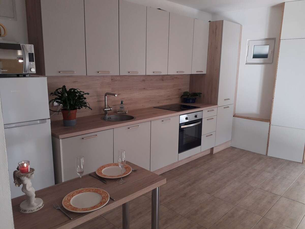 Şəhərin mərkəzində (Kazino və Termal Hamamlar 150 m məsafədə) tamamilə təmir edilmiş və cari və dizayn üsulu ilə bəzədilmiş yaşayış yeri. Turistlər, buristlər və şirkətlərin işçiləri (siqaret çəkməyən) üçün idealdır. "Elsa" studiyası həyət tərəfdən birinci mərtəbədədir. İkinəfərlik çarpayısı, balaca mətbəxi (hob, soba, soyuducu, mikrodalğalı soba, espresso qəhvə maşını, toster, çaydan və s.) və hamam otağı olan 16m ² səthi var. Döşəkağılar daxildir (Linvosges brendi).