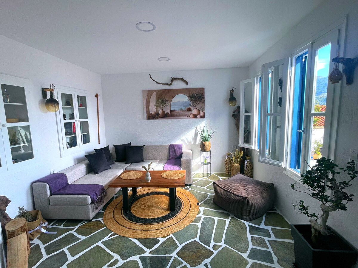 Skopelos qəsəbəsinin mərkəzində yerləşən, dəbli şəkildə yenidən qurulmuş kənd evi. Bu işıqlı, geniş əmlak kəndin, Palouki dağının, limanın və Alonnissos adasının panoramik mənzərəsi olan dam terrasına malikdir. Ev mağazalar, kafelər, barlar, çörək zavodları və restoranları olan canlı xiyabanlar arasında qurulub. Tavernaları, kafeləri və canlı, lakin oturaq həyatı olan liman yalnız bir daşın atılmasıdır.