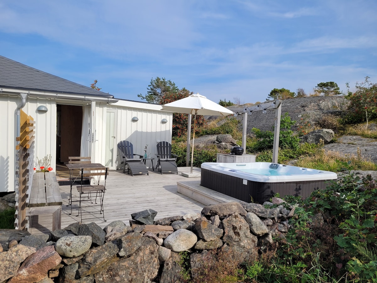 Kiçik qonaq evimiz "küçə" nin sonunda rahat və olduqca rahatdır. Sadə, estetik və asan xoşuma gəlir. Veranda Danimarka və Göteborqa keçən qayığa baxmaq imkanı verir. Uzun gəzintilər etmək üçün ilham almaq istəsəniz, bura Sizin üçün mükəmməl bir yerdir. Adada bir neçə restoranımız var. Hamam, gəzmək və yemək üçün ən yaxşı yerləri tapmaqda kömək edirsiniz. Sakit və təbiətə yaxın.