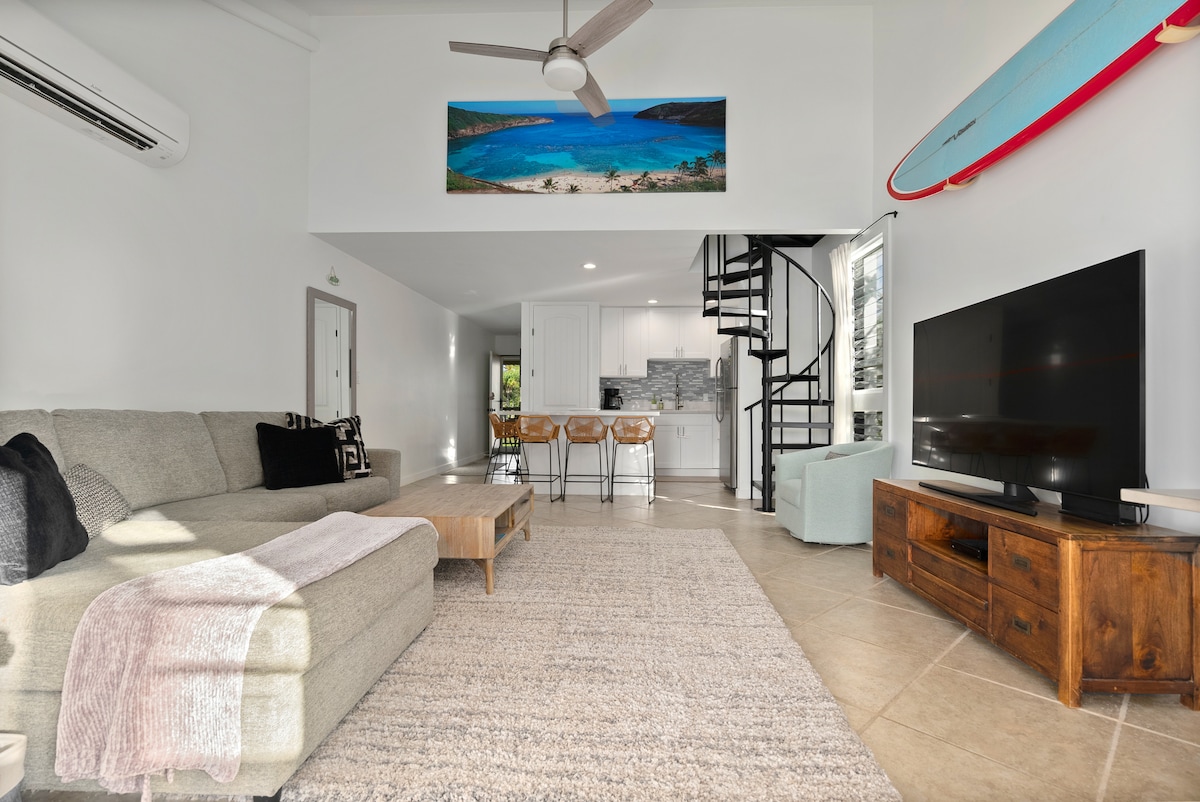 Legal Nightly Vacation Rental (No 30-day contracts) A cozy, island-style unit with a loft bed, perfect for an authentic Hawaiian getaway. The unit includes High speed WiFi, 65 inch Smart TV, Split unit AC, sauna, an outdoor shower, an outdoor gym, a sun deck, and private access. Located within walking distance to famous Waimea Bay and other beautiful spots, this space offers convenience, comfort, and island charm. Check my profile for other rentals!