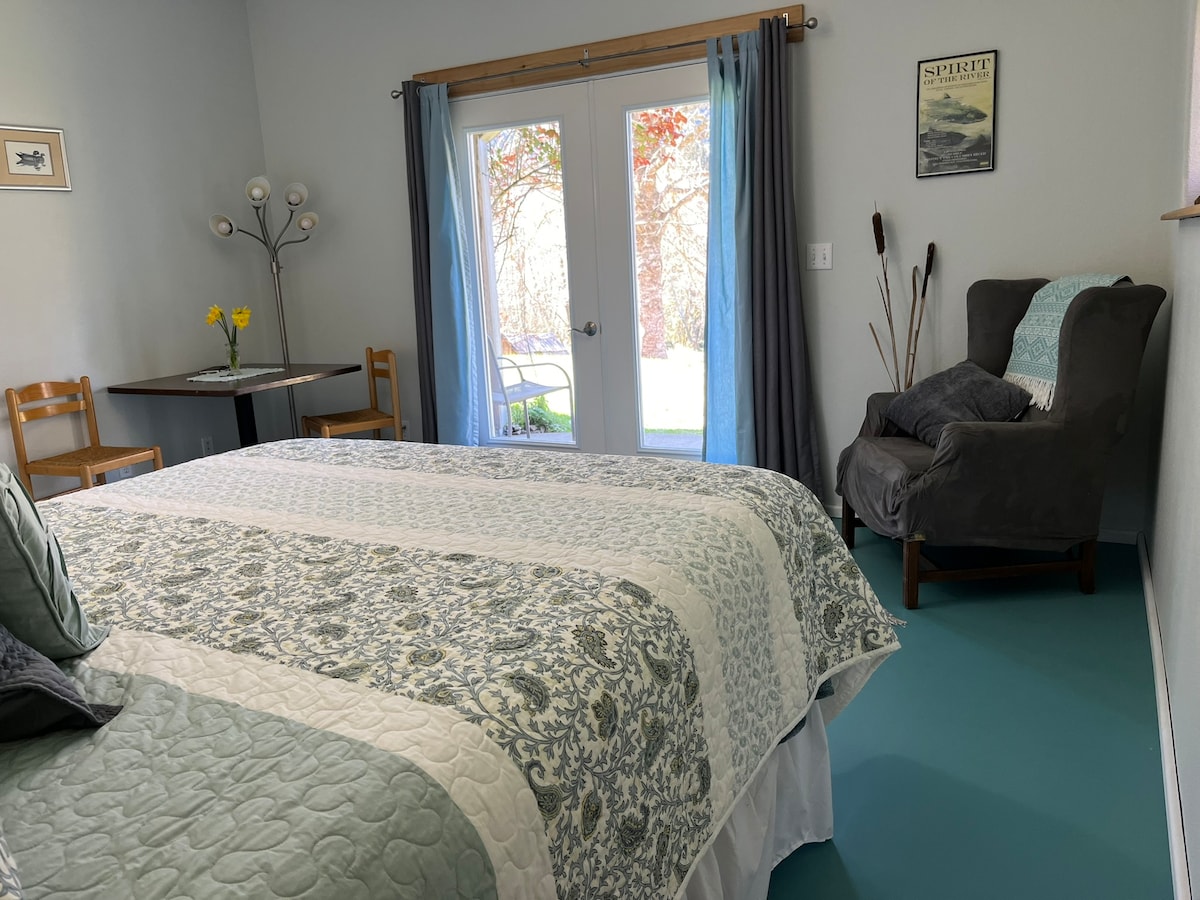 322 kv. metrlik tətil icarəsi mənzilimiz qapının yanında yerləşir, lakin Skamokawa Creek-də iki otaqlı Twin Gables Inn-dən ayrıdır. İki nəfərlikdir, lakin dörd çimdik yatır (qonaq otağında divar çarpayısı). Mənzil ekizlərlə üzləşmir, lakin arxa qapıdan suyun kənarına qədər 30 futdur. Mənzilə qədər 5 addım. Oteldə səhər yeməyi mövcuddur. Yalnız əvvəlcədən icazəsi olan kiçik it. Yaxınlıqda it yönümlü park, vəhşi təbiət sığınacağı və Yarmarkalar.
