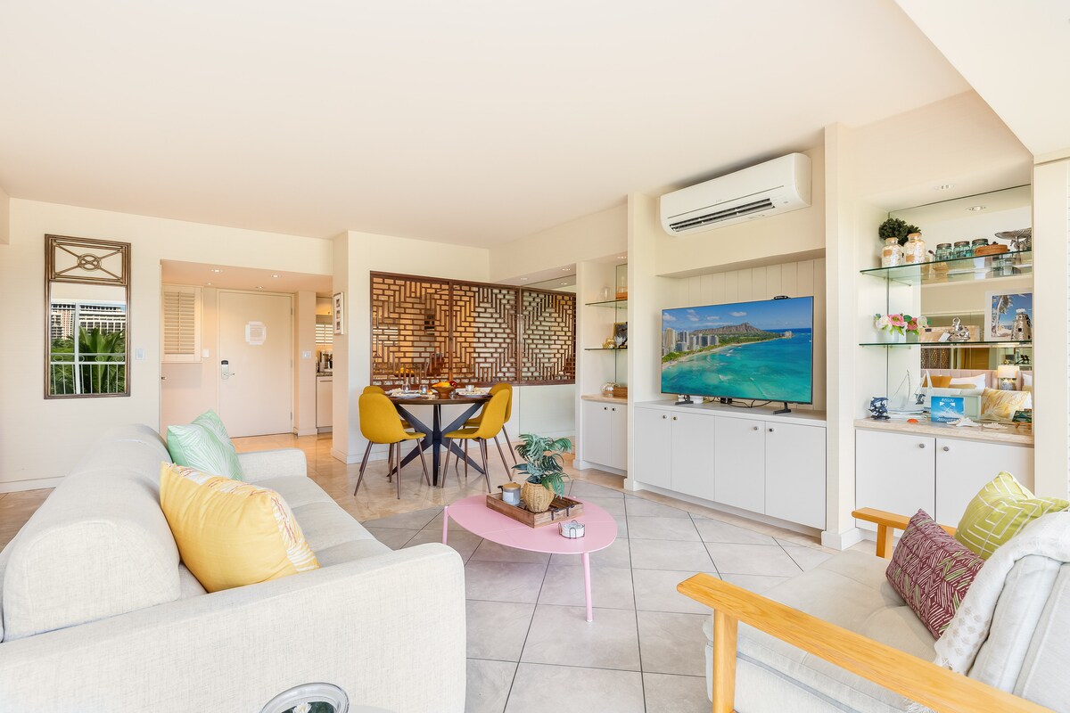 1960-cı illərin Vaykiki oteli olan ikonik Dəniz Sörfündə təmir edilmiş bu 20-ci mərtəbə kondominiumuna xoş gəlmisiniz. Qismən okean mənzərəsi, PULSUZ yeraltı parkinq, ultra-sürətli 1-gigabit internet, AC və Apple TV ilə 65" ağıllı televizor daxil olmaqla müasir lüks ilə vintaj füsunkarlıqdan zövq alın. Hovuzda dincəlin və ya yaxınlıqdakı dünya səviyyəli alış-veriş, yemək və çimərlikləri araşdırın. Kraliça çarpayısı və divan çarpayısı ilə cütlüklər və ya ailələr üçün mükəmməldir. Bu gün cənnət diliminizi rezervasiya edin və Waikiki-nin ada dəbdəbəsinin mahiyyətini kəşf edin.
