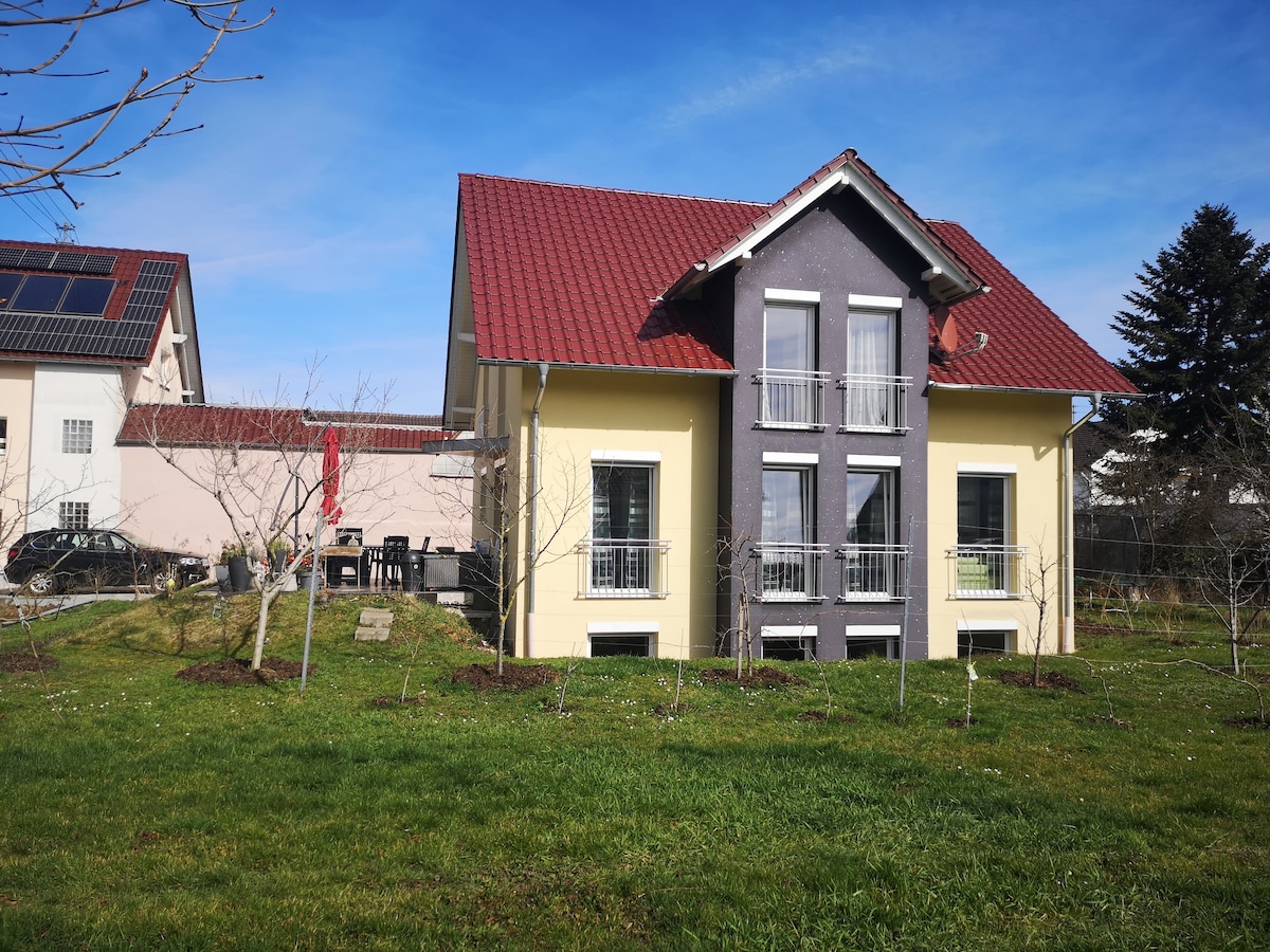 Kiçik, lakin təchiz olunmuş mənzilimiz Oberschopfheim-in kənarında, birbaşa üzüm tənəklərində yerləşir. İstər yürüyüşçülər, istərsə də sənətkarlar, təbiətsevərlər... - sizi məkanımızda salamlayırıq. Mətbəxi və hamam otağı olan mənzil tamamilə sizindir və kilidlənə bilər. Evin girişini paylaşırıq. Kiçik terrasınızda bütün gün ərzində günəşdən zövq alacaqsınız. Josef asma qarın donuzu Vilhelm və pişiklərimiz İndie, Hera və Odin ilə birlikdə evdə yaşayır🐷 🐈⬛ 🐈