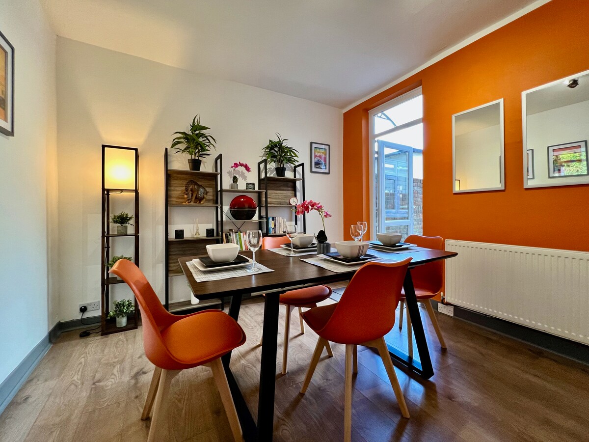 Our cosy home with a garden & parking (can fit two cars) is available for short term let. Three bedrooms: Master room has a king bed & en suite. Second bedroom has a single bed & third has a single/double bunk. There is a large family bathroom. TV- have Netflix and Amazon prime. WiFi available. We have children (and kids toys / games / books etc!) Am super happy for children to stay and have fun but would ideally say best for children over 5yrs. Please make yourself at home here!