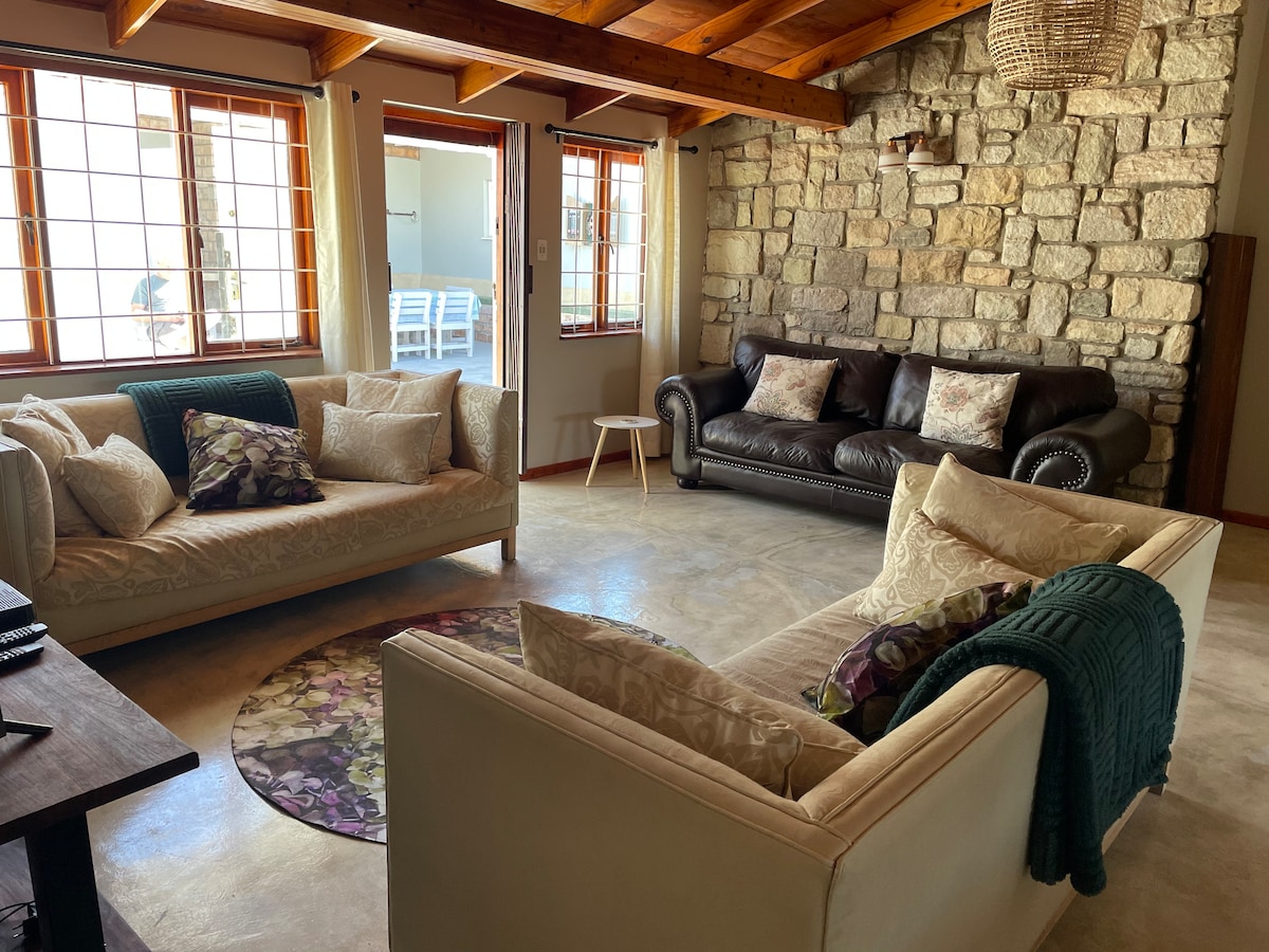 A sundowner with the magical un-interrupted view of the Namibian Desert, a peaceful start to your Namibian journey. 5 minutes walk to the town center and all it's amenities. Bookings of 4 guests or less have access to the bottom floor, whilst 5 to 8 guests get access to upstairs as well. Small bookings can use upstairs for the price of 5 guests.