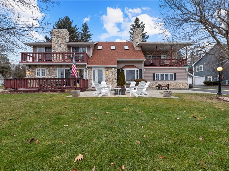 Perfectly positioned on the shores of Lake Como, this spacious lakefront cabin sits just steps from the beach, playground, restaurants & picnic areas - the most ideal location to enjoy all that the area has to offer. Inside, experience an inviting blend of eclectic character & modern upgrades, creating a fun yet elevated vacation atmosphere. Enjoy the additional driveway for watercraft, take in views from the balconies, & experience lakefront gatherings year-round; this is Lake Life Living.
