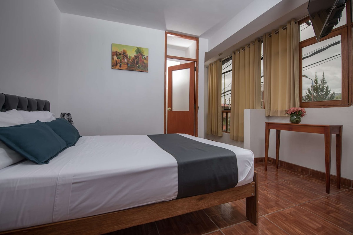 Esta habitación tiene un balcón que ilumina todo el espacio y le da ese encanto clásico de casona antigua. La ubicación es excelente: estás literalmente a pocos pasos de la Plaza de Armas, rodeado de restaurantes, cafeterías y puntos turísticos. Al ser una zona céntrica, puede haber algo de ruido de autos o personas, típico de una zona tan céntrica. Es un espacio ideal para viajeros que buscan buena ubicación, comodidad y una experiencia auténtica en el centro histórico.
