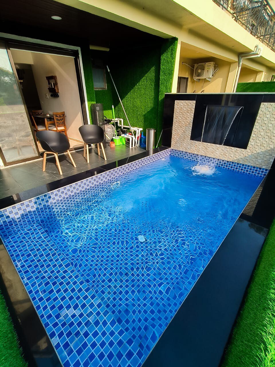 Boho Style Luxury Studio with Jacuzzi and Garden. A peaceful getaway. Fully loaded with WiFi, JBL 2.1 Home Theatre, BT Music System, Full-HD LED TV. A stylish bathroom with toiletries. Pantry with tea/coffee supplies, RO water, Microwave, Induction Hob, Fridge & s/w Toaster. Fenced garden for children. Dine in the garden with beautiful weather. Jacuzzi has hot water that can be used anytime. Common amenities on-site like swimming pool, games room, gym, mini theatre, cycling and restaurant.