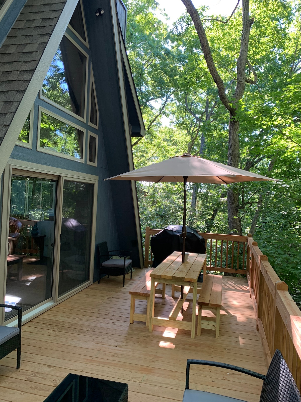 This family friendly cabin has it all including modern amenities, spectacular views and is centrally located in the heart of Innsbrook. Nestled in the woods only steps to all Innsbrook has to offer including Lake Aspen, Charrette Creek Commons, the 18-hole championship golf course, nature trails, fishing and more. This cabin can accommodate up to 6 guests and is the perfect place to spend some time together as a family or time alone away from the family.