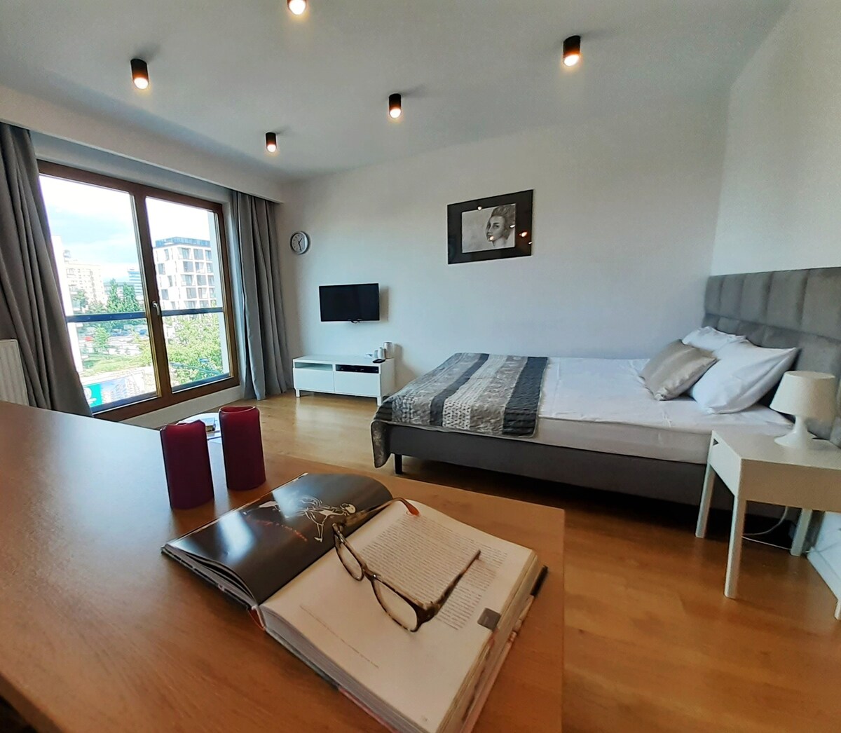 Qonaq otağı, mətbəx, hamam, yataq otağı və Varşava Üsyan Muzeyinə baxan böyük balkondan ibarət tam yeni, ultra-müasir mənzil. Mənzilin tərtibatı çox yüksək səviyyədədir. Mənzildə 4 nəfər yataq otağındakı böyük, çox rahat ikitaylı çarpayıdan və qonaq otağındakı böyük açılan divandan istifadə edərək rahatlıqla vaxt keçirə bilər. Mənzil - əlavə olaraq paltaryuyan maşın, fiber-optik, WIFI, TV ilə təchiz olunub. Yer sakit və çox təhlükəsizdir. Yeraltı parkinq.