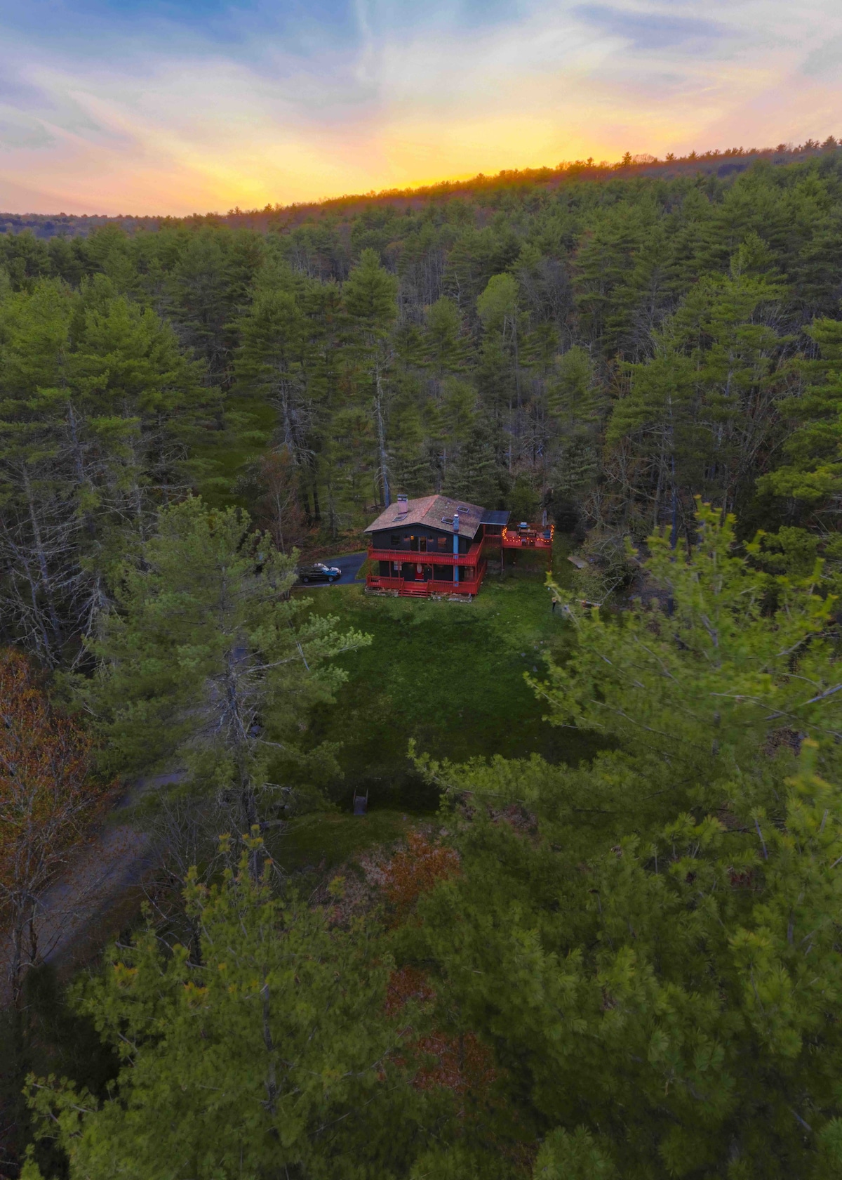 Sakit Şəxsi göl evi 1939-cu ildə olduğu kimi sizə əzəmətli su mənzərəsi bəxş edən 2 nadir qaya mavzoleyində qurulub. Əlavə Lg Böyük otaq w böyük buxarı. Böyük mətbəx aşpazı əhatə edir. Böyük cakuzi, örtü ilə Rowboat, 8 kayak, Treehouse, Lakeside pəncərələri, doklar, Manhettendən 1 saat, dərin meşədə olduğunuz kimi geniş canlı. Balıqla dolu təmiz, korlanmamış göl. Heç vaxt qaz mühərrikləri olmayıb. Xizək sahəsinin üstündəki Mountaintop gölü. Stargazing! Get-gedənlər üçün mükəmməldir.