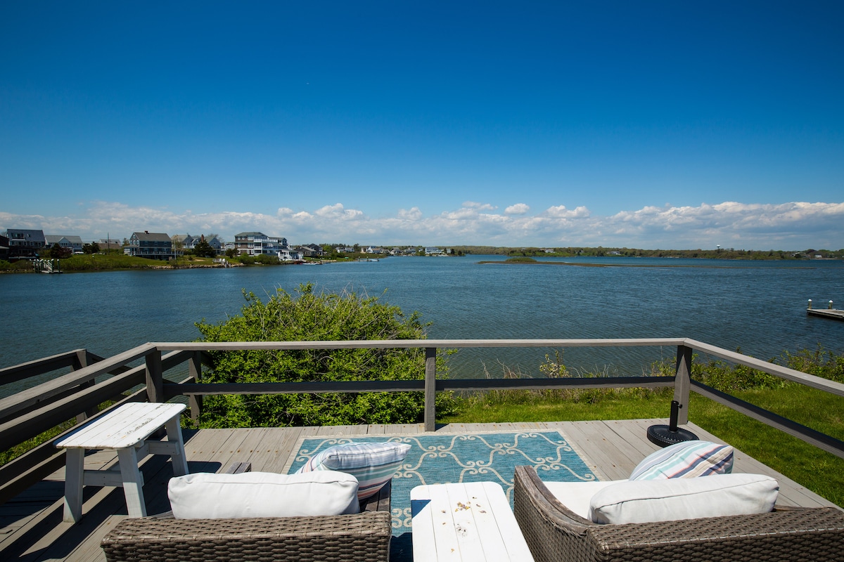 A unique and tranquil getaway, described beautifully by client reviews. Situated on Matunuck Point with sweeping views of the Atlantic Ocean, beautiful Block Island, boats coming in and out of historic Galilee Breach Way or enjoy watching surfers at Deep Hole. Love the beach? We have private access to East Matunuck 100 steps away. If your preference is the pond, Potters Pond is right in the back yard with a new beautiful custom built dock, with paddle boarding, and kayaking equipment.