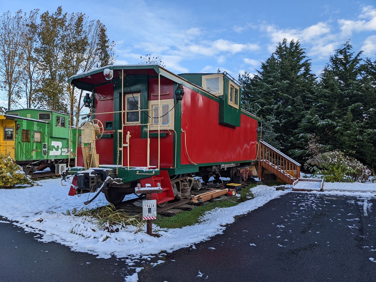 Olimpiya dağlarının möhtəşəm mənzərəsi! Unikal və dəbli 1951-ci il Burlinqton Şimal kabinələri. Hər bir kabinə 4 nəfəri rahat yerləşdirmək üçün tam yenidən qurulub; bir yataq otağı, yataq divanı və fincanda futon var. Qapalı xüsusi hava zolağında yerləşir. Olimpiya Oyun Təsərrüfatına yaxın və şəhərin mərkəzindən 10 dəqiqədən az məsafədə yerləşən Dungeness çayından birbaşa küçədə gözəl məhəllə. 20-ci əsrə aid kabinədə iyirmi birinci əsr şəraiti.