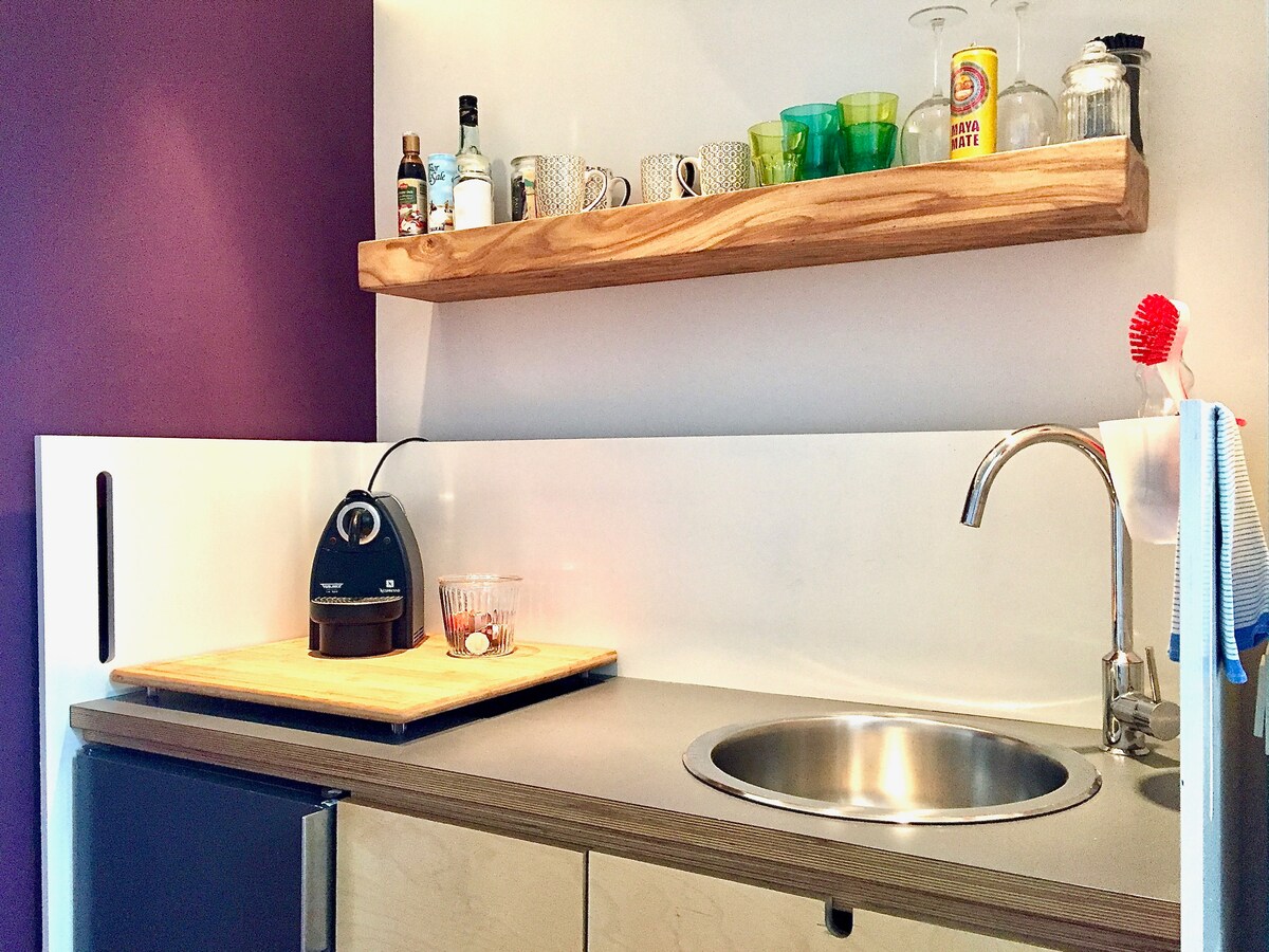 Yüksək keyfiyyətli mebellə təchiz edilmiş 38 kvadrat metrlik mənzildə 1 yataq otağı, 1 hamam otağı, qonaq otağı və mətbəx var. Günə ləzzətli NESPRESSO qəhvəsi ilə başlaya və bu mənzilin bütün gözəl imkanlarından zövq ala bilərsiniz. Yataq otağında rahat 1,60 m-lik ikinəfərlik çarpayı var. Qonaq otağında 3 nəfərlik yemək sahəsi, eləcə də divanı və böyük 55 düymlük ağıllı televizoru olan rahat oturma sahəsi tapa bilərsiniz.