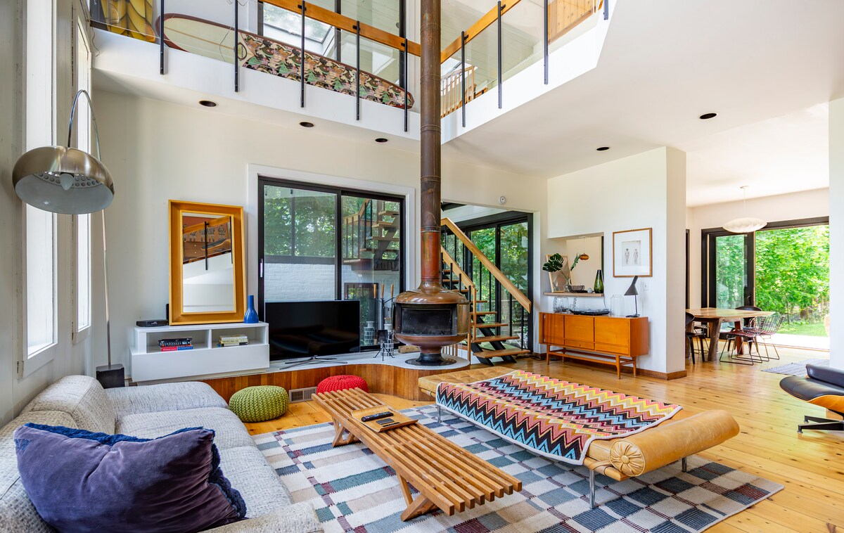 Midcentury style in the heart of Sag Harbor Historic district. Soaring 20-foot floor-to-ceiling windows and skylights throughout offer the ideal indoor-outdoor experience for enjoying all seasons. Featured in Home & Garden, the house is situated on sprawling grounds, one of the largest lots in Sag Harbor. In the winter, enjoy the Scandinavian sauna and lounge in front of the fireplace. Gunite pool open May 25 to Sept 3.