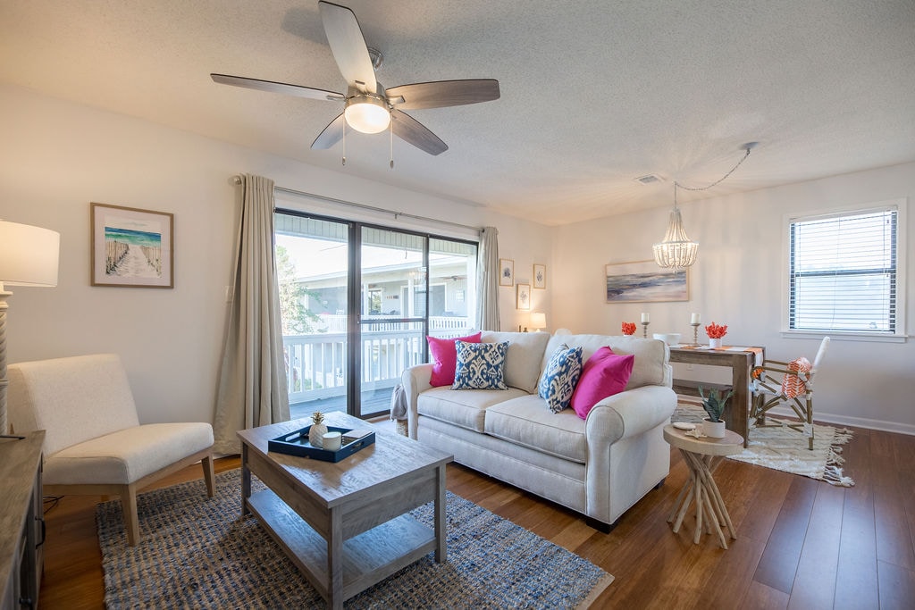 Immerse yourself in the popular seaside 30A lifestyle. Steps to beach and an enjoyable walk or bike ride to Seaside restaurants and cafes. Convenient lower floor condo with access to a private patio and common lawn area. ✰Includes free bikes & beach gear✰ ✔ Perfectly located right on 30A, just steps to beach. ✔ Full refund available one day prior to arrival. ✔ Full kitchen ✔ Pool ✔ Fast Wi-Fi w/ space to work ✔ Convenient keyless entry ✔ HD Smart TV ✔ LED lighting Minutes to Seaside