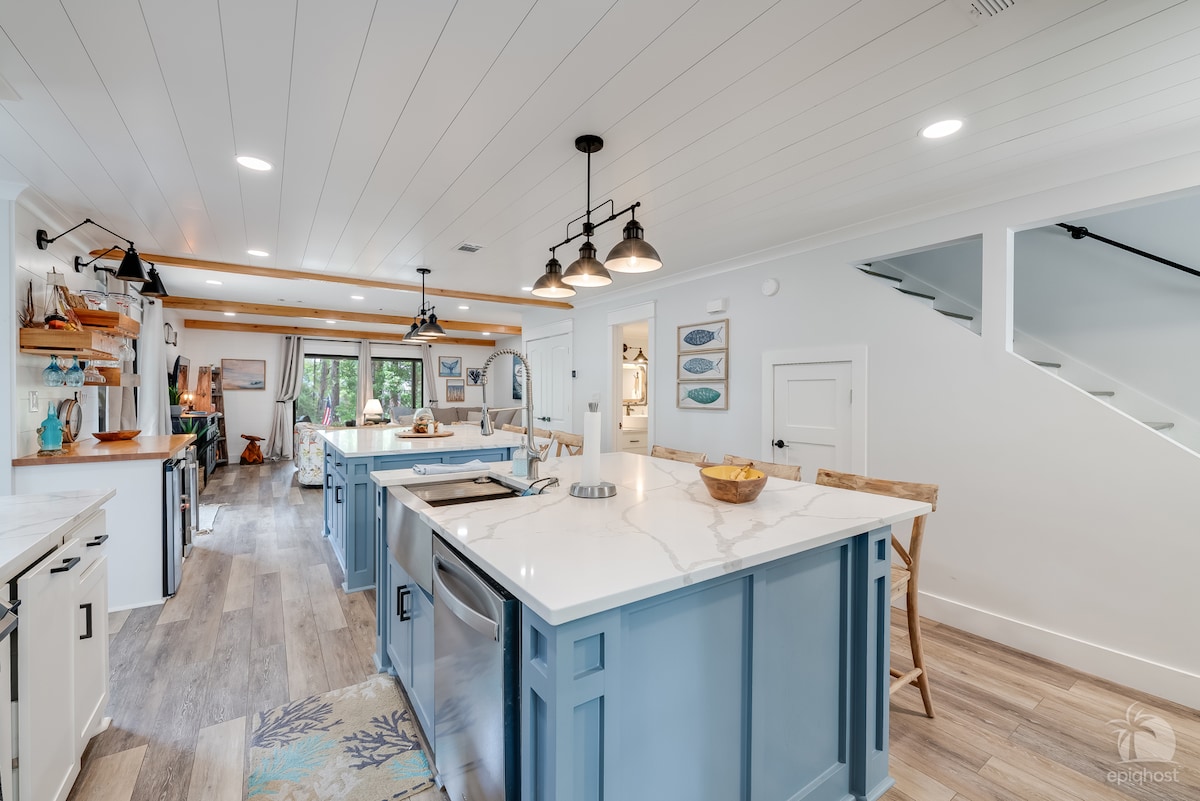 Kiçik, lakin dizaynda möhtəşəm olan bu 30A çimərlik evi sizi valeh edəcək. Məhəllə hovuzu, idman zalı və gözəl ağ qumlu çimərliklərə giriş bir neçə blokdan ibarətdir. Kiçik Dalğalar cazibədarlığı, restoranları və məşhur dondurma dükanı ilə seçilən Mavi Dağ Çimərliyi ərazisində qurulub. Elektrikli avtomobillər üçün EV avtomobil şarj cihazı (əlavə haqq yoxdur), üstəlik elektrikli qolf arabasına girişimiz (əlavə ödəniş) var. Yataq otağında böyük ölçülü çarpayı və ikinəfərlik çarpayı var və yuxarı mərtəbədə 2 ikinəfərlik çarpayı da var.
