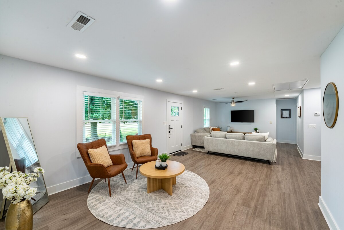 Walk to downtown Waxhaw from this fully-renovated historic home with 3 bedrooms, open family room, pretty sunroom, 2 full bathrooms and a large chef's kitchen w/ farmhouse table & a breakfast bar. Fully stocked kitchen features Keurig K-cup & coffee maker, pots, pans and utensils. The main-level primary-bedroom-suite features a comfortable king bed, smart TV, renovated bath, walk in closet & corner desk. Secondary bedrooms offer queen beds, built in cabinets & a shared loft space on 2nd floor.