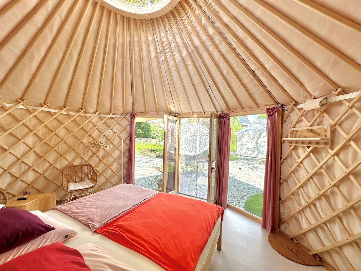 Sadə komfort+ tək ayaq üstə 30 kvadrat metrdən çox macəra dolu, romantik kabinə. Elektrikli əsas mətbəx. Aksessuarlar, yuxu, yaşayış və çöl sahəsi. Böyük qonaq Hoqanda şərikli hamam otağı da var. Terras: 2 hektar meşə və çəmənlik mənzərəsi olan günəşli bir yer, vadiyə və Wolfshundereviere 'de. Qiymət 1 nəfər üçün etibarlıdır, paketlər / bir neçə nəfər üçün ayrıca istəyin. Yazdan payıza qədər bron edilə bilər.