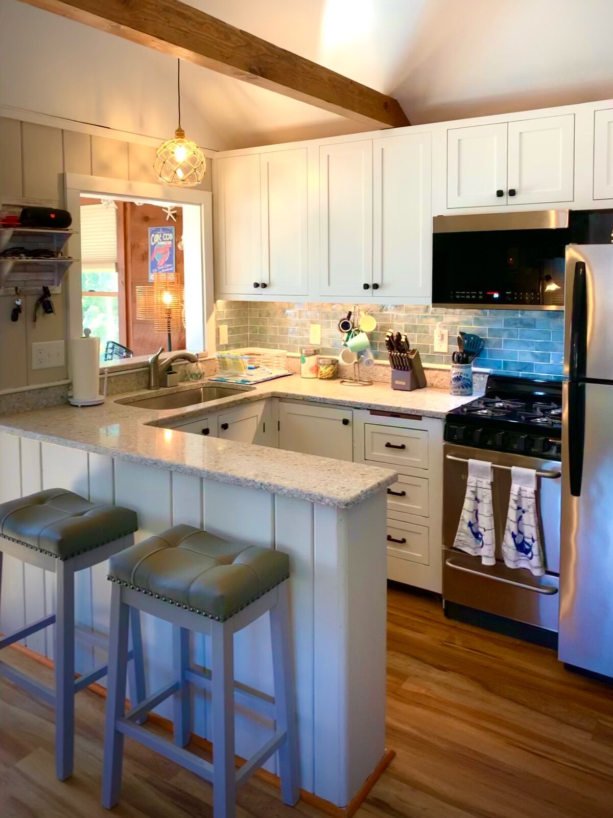 This is a free-standing private cottage that sleeps 2 comfortably. A spiral staircase leads up to a sleeping loft with a queen size Nectar bed! There is a full futon couch on the main level. This cottage is not handicap accessible. The kitchen has everything you may need. The most spectacular thing about this home is its close proximity to the National Seashore. The salt pond, bike path, and freshwater ponds are also moments away!