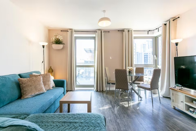 Whether you're in town for a concert, football match or just to explore the city this apartment in a secure, modern building located just 5min walk to Wembley Stadium & OVO Arena. Boxpark & London Designer Outlet nearby. Surrounded by Restaurants, Cafés, Parks, and Grocery stores. Enjoy stylish open-plan living area, private balcony, fully equipped kitchen with premium appliances and a modern bathroom. Free WiFi and Smart TV's for your entertainment. Stay active with access to an on-site gym.