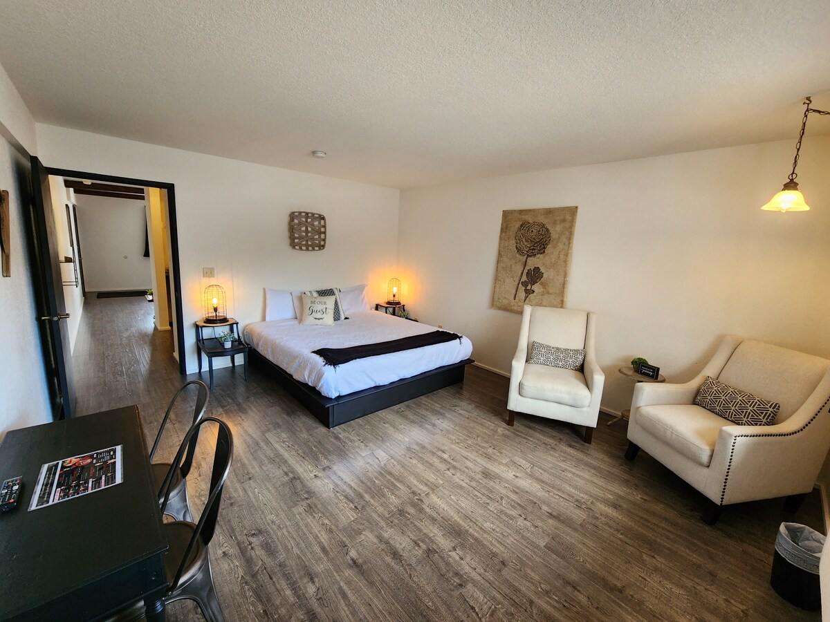 Füsunkar, bənzərsiz bir yer. Wanderlust fərdi ayrıca süitaları olan butik moteldir. Öz xüsusi açıq hava girişinizlə öz-özünə giriş/çıxış. Daxildir: 2 Queen çarpayı, 1 Xüsusi Bunk (qonaqlar üçün ən yaxşı 5'0" və altında), Mini Soyuducu, Keurig w/coffee, Smart TV, Qapı klaviaturaları. Biz Ev Heyvanlarına Uyğunuq! Hər EV HEYVANI üçün $ 25 HAQQI var - Açıqlanmayan ev heyvanlarından $ 250.00 tutulur PARKING-Y BİR daxil park yeri əsas parkinq yerindədir Əlavə Nəqliyyat vasitələri üçün $ 25.00 rüsumu var.