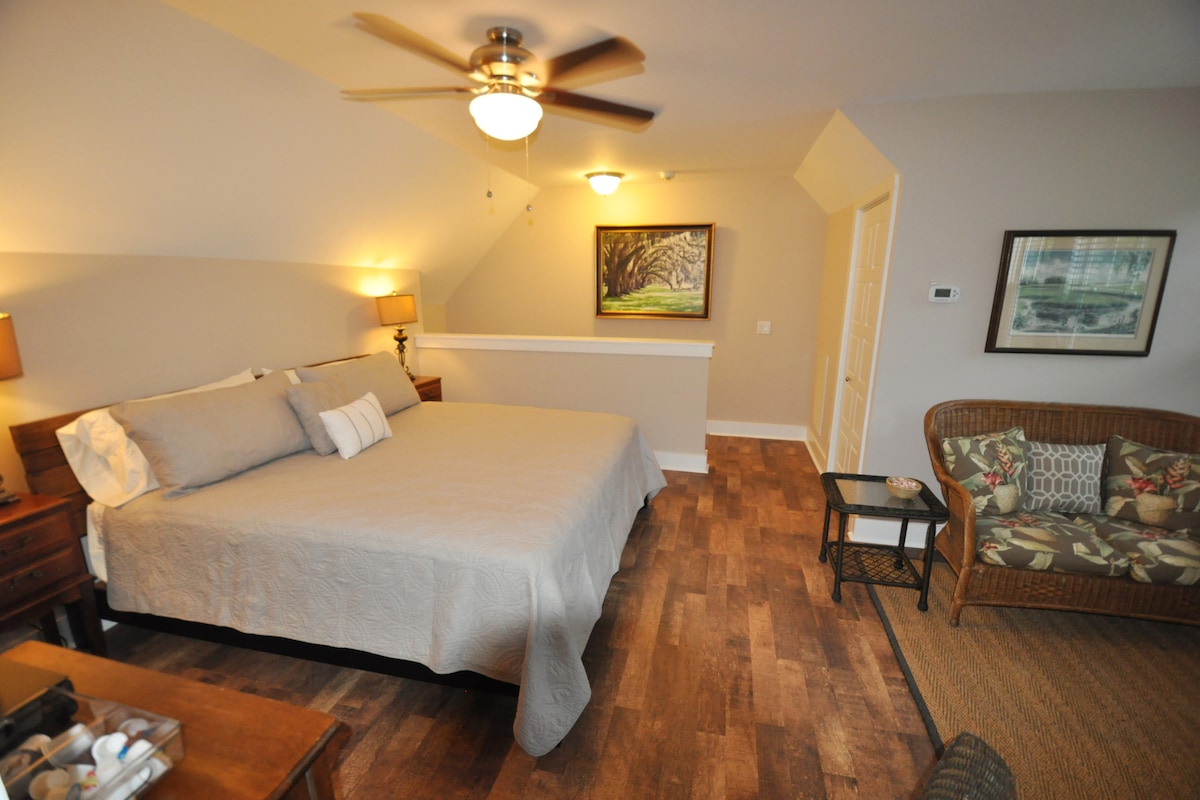 Bu parlaq və təmiz orta əsrlərə aid müasir üslublu yataq otağı cütlüklər, solo və işgüzar səyahətçilər üçün əla istirahət yeridir. Bəzi xüsusiyyətlərə ikili duş başlıqları, ayrıca paltaryuyan və qurudan maşın və rahat oturma sahəsi daxildir. Hava limanına cəmi 12 dəqiqə, I-526-ya isə 4 dəqiqə qalmış mövqe "mərkəzdə yerləşir" hesab olunur. 7 mil Çarlston şəhərindən. 14 mil Folli Çimərliyinə. Ən məşhur toy məkanları, plantasiyalar və LowCountry-in təklif etdiyi bütün gizli yerlərə yaxındır.