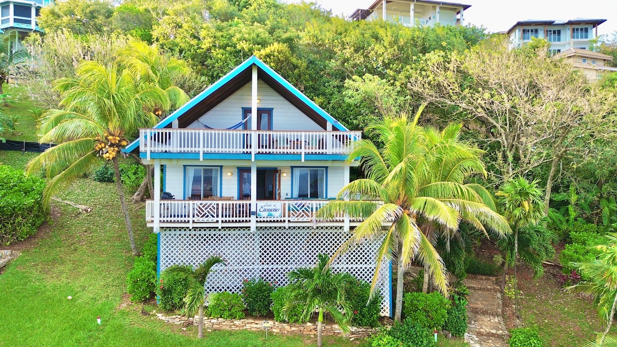 Your Tropical Haven Awaits! Immerse yourself in our pristine two-story condo amidst lush tropical forest. With four sunlit bedrooms, two sparkling bathrooms, and a breezy screened porch, relaxation is just the beginning. A one-minute stroll to the beach and a communal swimming pool, where endless days of sun-kissed bliss await. Swim, snorkel, or dive off our private dock. Enjoy free access to the Mayan Princess Resort in West Bay.