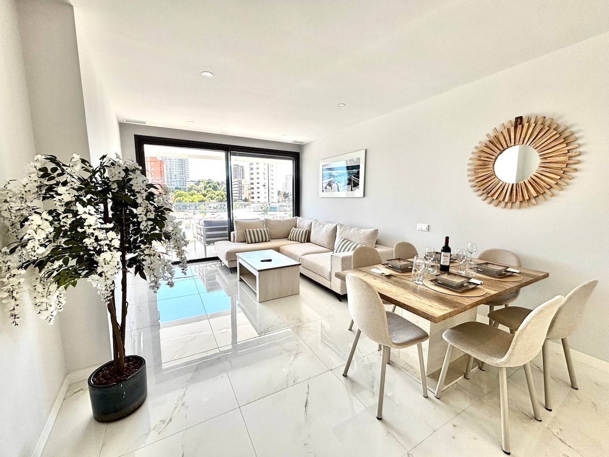 Evinizə xoş gəldiniz! Yeni 80 kvadrat metrlik lüks mənziliniz airbnb-də - Poniente çimərliyində möhtəşəm qumlu, ən uzun çimərliyə 30 metr məsafədə yerləşən eksklüziv, sakit bir ərazidə yerləşir. Mövqe sizə gözəl dəniz mənzərəsi təqdim edir və hovuzu olan 200 kv. metrlik terras var. Zövqlü və eksklüziv interyer və mebellər sizi hər an dincəlməyə və zövq almağa dəvət edir, tamamilə ləğv edilib. Hər otaqda müasir ağıllı televizor var. Və əlbəttə ki, öz qarajınız var.
