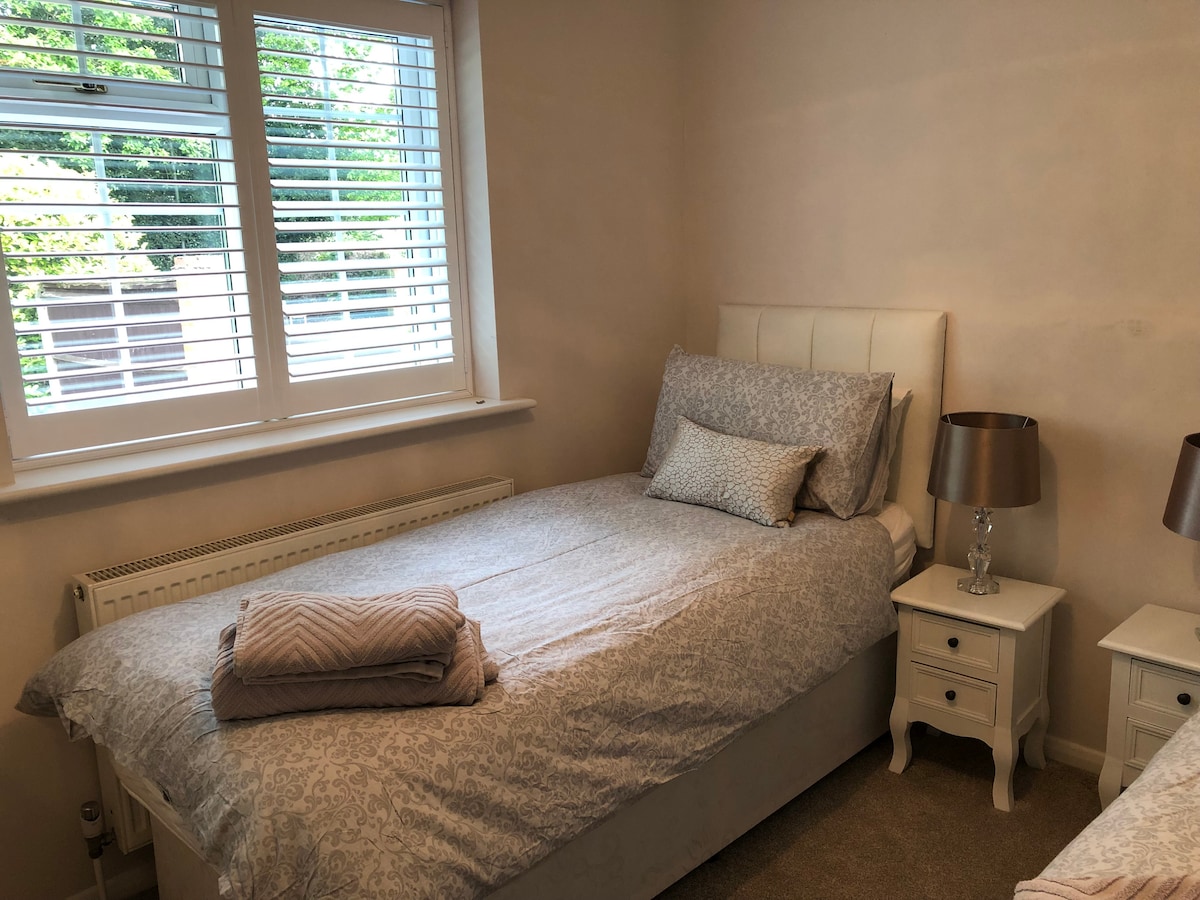 Ayrıca girişi və evimizin bir hissəsi olan geniş bir yataq otağı əlavəsi. Yataq otağı ya böyük ölçülü çarpayı, ya da ikinəfərlik çarpayı ilə qurula bilər. Paltaryuyan/qurudan maşın, soba/hob, mikrodalğalı soba və qabyuyan maşın ilə tam vanna otağı və mətbəx. Bağçaya baxan sevimli salon/yeməkxana. Qonaqlamanız üçün genişzolaqlı/tv/yataq dəsti/dəsmallar. Basingstoke kanalının yaxınlığında, West Byfleet dəmir yolu stansiyasının piyada məsafəsində, Londona sürətli keçidi olan sakit bir yer. Ascot Yarışları və Uimbldon tennis üçün idealdır.