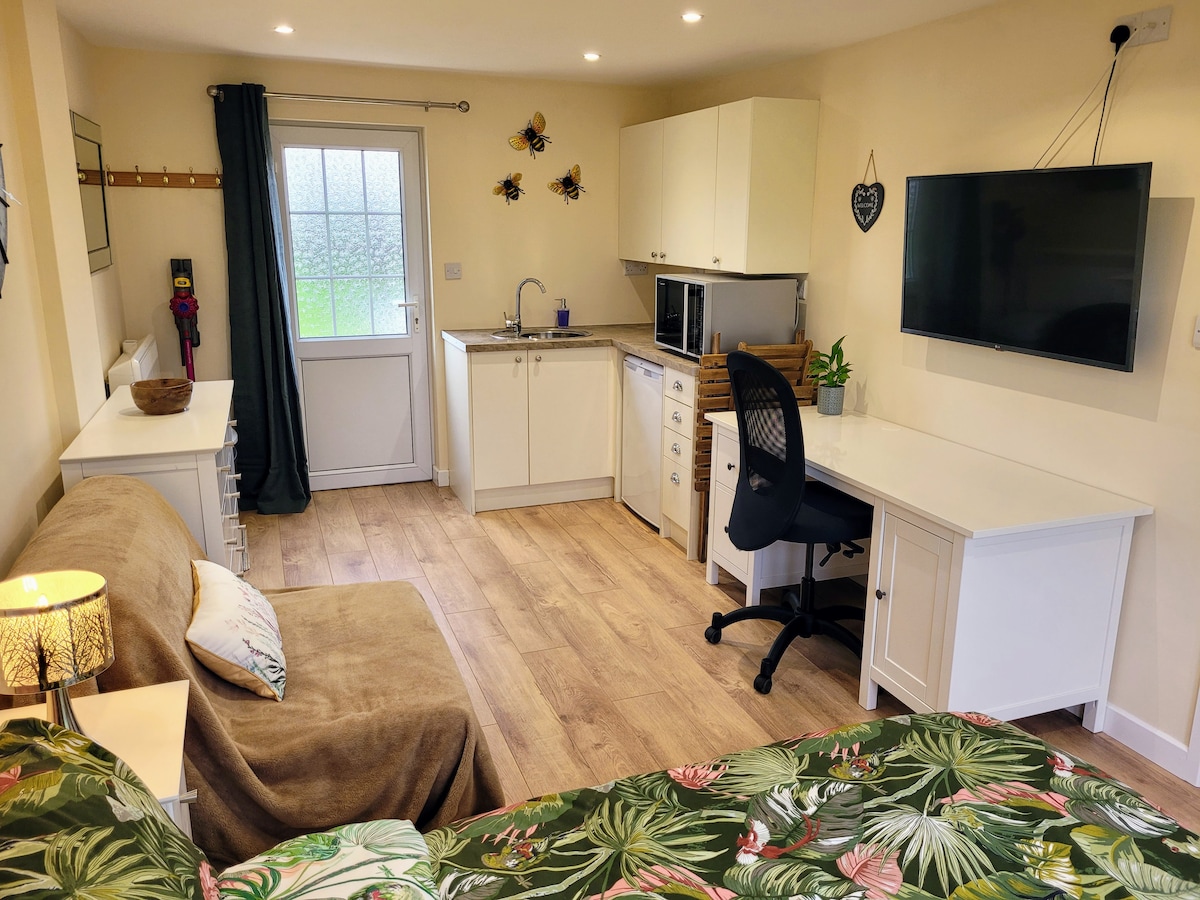 Somersetin cənubundakı sakit, kənd kulisində bu yaxınlarda tikilmiş, özünə məxsus bir əlavəni təklif edirik. Bir nəfər üçün mükəmməl uyğun olan əmlaka mətbəx, duş otağı + wc və SAT tv ilə yataq otağı daxildir. Cənubi Petherton kəndində iki restoran və qonaqpərvər yerli pivəxana ilə birlikdə mağazalar təklif edən əla imkanlar var. Həmçinin Yeovil, Taunton, Bristol və s. üçün yaxşı nəqliyyat bağlantılarımız var və ləzzətli Yura Sahilindən yalnız 30 dəqiqəlik məsafədəyik.