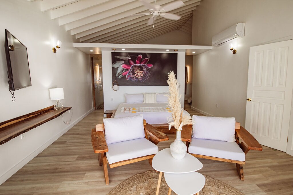 Kral çarpayısı, dəbli dekorasiya, A/C, Wi-Fi və veranda girişi olan lüks çimərliyə yaxın süita. Luna Beach Luxury Boutique Resort-da Karib dənizinə doğru addımlar. Cütlüklər və tək səyahətçilər üçün mükəmməldir.