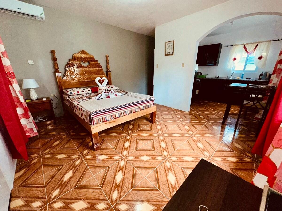 Negril Beach Road boyunca yerləşən dəvət etdiyimiz Airbnb-yə xoş gəlmisiniz! Bu studiya mənzili rahat istirahət təmin edən müntəzəm, lakin rahat mebellərlə zəngindir. Nəfəskəsici çimərliyə 5 dəqiqəlik mehriban gəzinti. Mövqeyimiz gəzinti məsafəsində banklar, supermarketlər və daha çoxu ilə rahatlıq təklif edir. Yaxınlıqdakı restoranlarda yerli təamlardan zövq alın və birbaşa əmlakımızın qapısında yerləşən dükandan sarıköklü toyuq və pətəklərin orijinal dadını dadın.