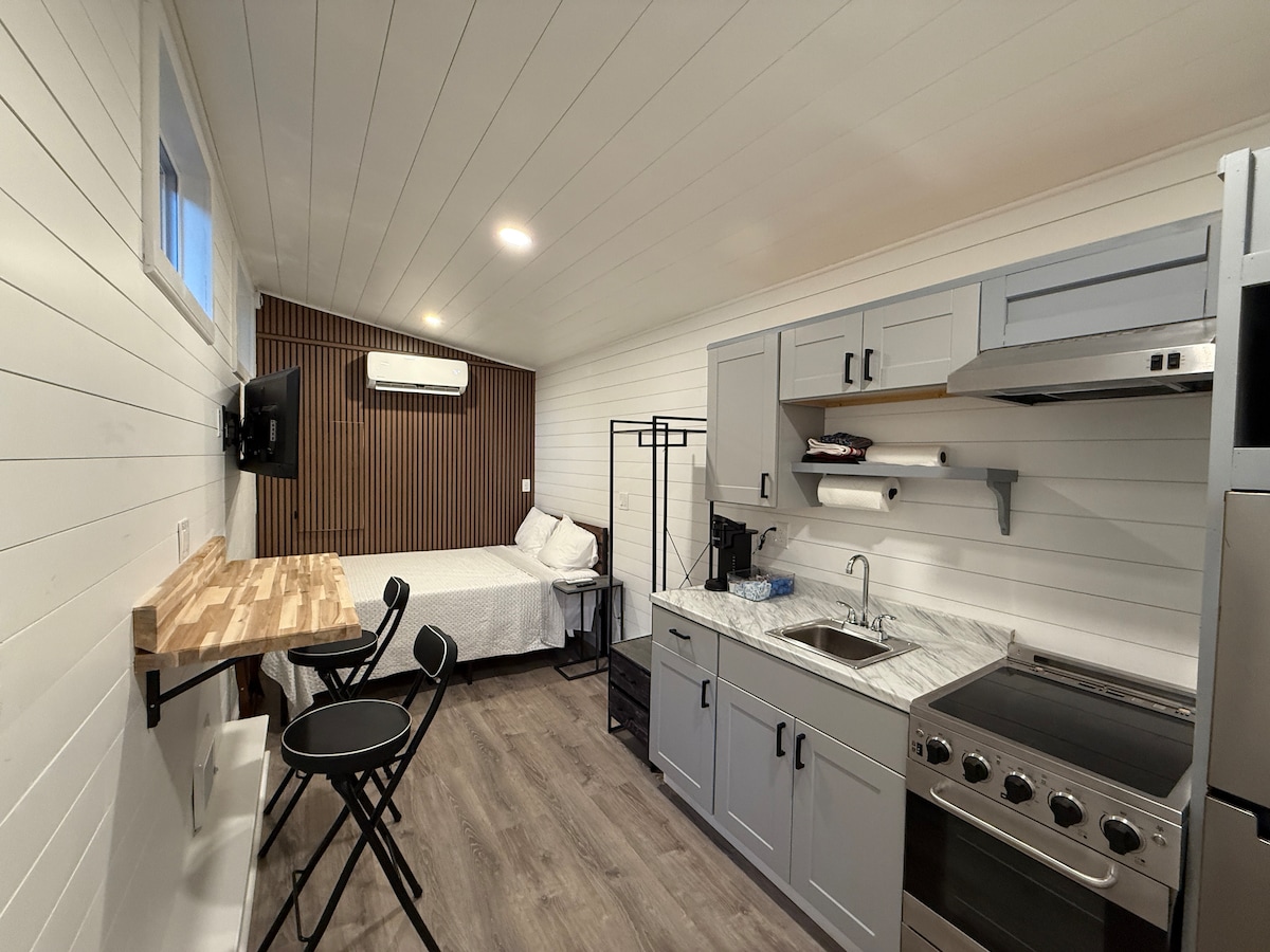 Perfect for solo travelers or couples.This new, cozy studio is part of a larger home but fully self-contained w/ its own entrance. Inside, you’ll find: - A comfy living area with a pull-out twin bed and seating - A kitchen with essentials for light cooking - A private bathroom with shower, towels, and toiletries - High-speed Wi-Fi and a flat-screen TV Though attached to our home, your space is private. Located in a quiet neighborhood, close to attractions, restaurants, and transportation.