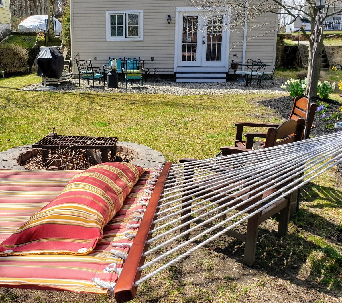 Nyu-Yorkdan bir saatlıq məsafədə valehedici ölkə istirahəti - romantik cütlüklərin gəzintisi və ya 4 nəfərlik ailə üçün mükəmməldir. Kənddə yerləşən qəribə kottecimiz hər şeyi əhatə edir; Restoranlar, barlar, grocer, cvs, bagel, avtobus dayanacağı və hətta ictimai çimərlik! Tonlarla yerli turistik yerlərdən bir neçə dəqiqəlik məsafədə; sürücü, xizəksürmə, intibah yarmarkası, şərab zavodları, alış-veriş, göl fəaliyyətləri, bağlar, kremlər, parklar, Appalachian cığırı, SPA, raftinq, qolf, su parkı və s. Ev heyvanları xoş gəlmisiniz! İcazə #21-07603