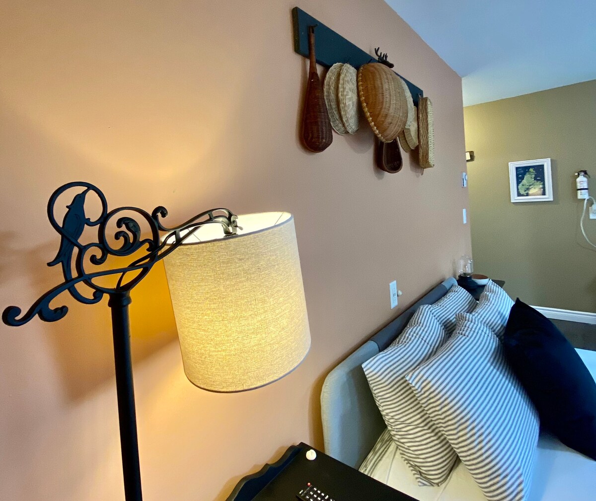 Ailə evimizin əsas səviyyəsinə bərkidilmiş yüngül və havalı qonaq otağı. Bir kraliça çarpayısı, duşlu tam vanna və mini soyuducu, mikrodalğalı soba, çay/qəhvə ləvazimatları, toster və çanağı olan mətbəx daxildir. Aşağı səviyyədə yerləşən şərikli barbekü. Süitanın arxasından kiçik ayrıca veranda və qarşısında parkinq. Süitada şərikli məkanlar yoxdur. Bron etdikdən sonra giriş təlimatları Airbnb tətbiqinin gələnlər qutusu vasitəsilə göndəriləcək. Gəlişinizdən əvvəl təlimatları diqqətlə oxuyun.