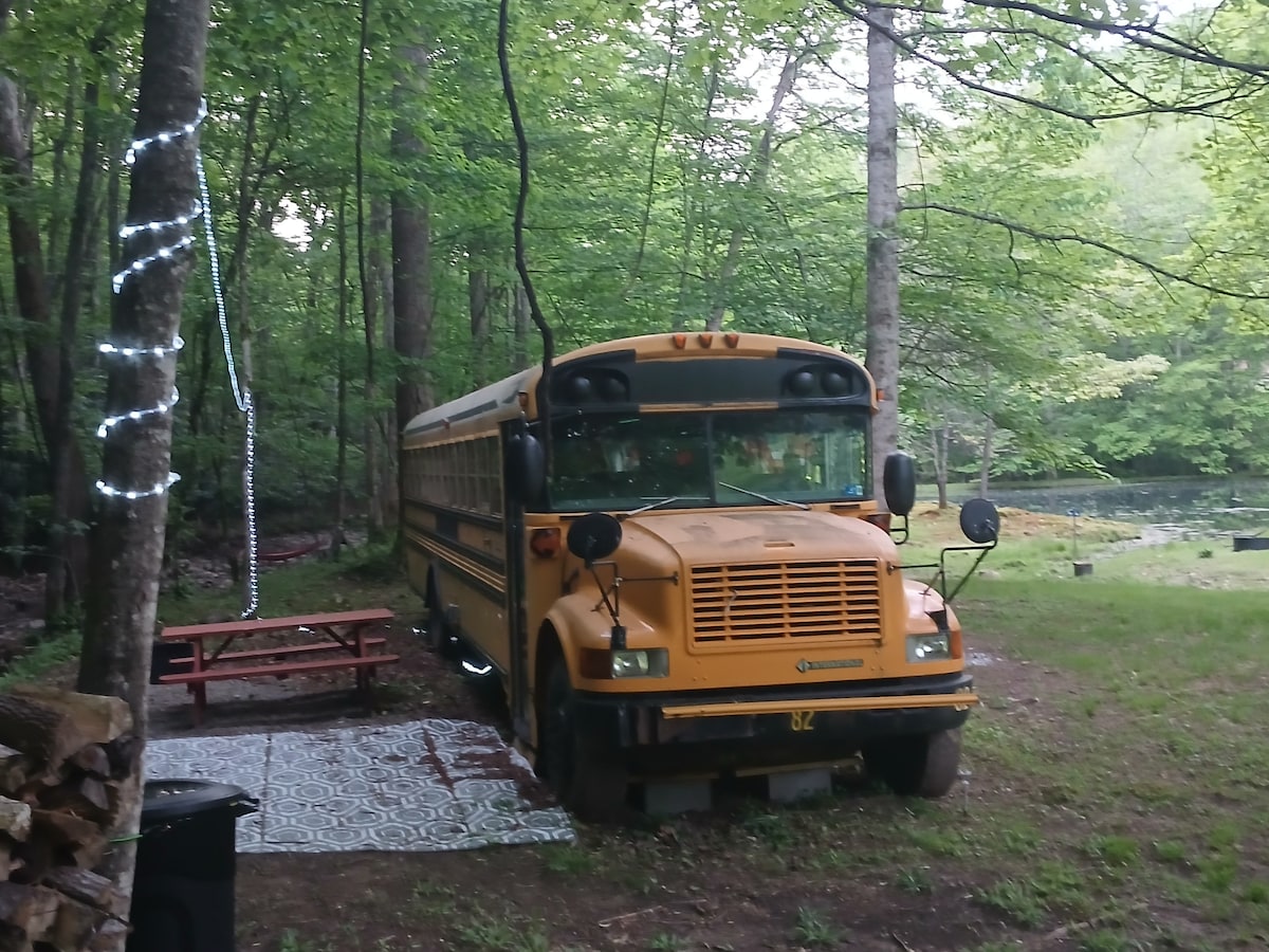 Woodstock skoolie-də bu unikal qonaqlamadan zövq alın. Soyuq gecələr üçün yanğın yeri və isti yay gecələri üçün Kondisioner yeri ilə. Od və piknik masası olan kiçik bir axın boyunca oturmaq. Mavi gil və bas ilə təchiz edilmiş əyləncəli gölməçə üçün balıqda balıq tutmaqdan zövq alın. Soyuducu, mikrodalğalı soba, diskoteka işığı və qəhvə maşını ilə pulsuz qəhvə və isti şokolad ilə təchiz olunub. Sxs və Atvs parkinq dəstində qarşılanır. Bu ərazi çoxlu Appalaç mənzərəsi təklif edir.