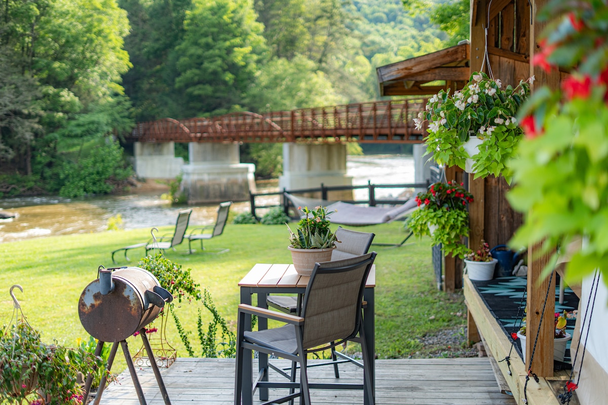 Meadow River dəmir yolu yolunun önündə yerləşir və 11 mil məsafədə yerləşən Nyu-River Qorq Milli Parkı və Qoruğuna rahatlıqla gedə bilərsiniz. Sammersvil gölü ştat parkı 11 mil. Çay kənarında tətil, balıq tutma, üzgüçülük və kayak sürmə imkanları axtaranlar üçün mükəmməl kabinə çadırı. Yaxud sadəcə dincəlmək! Burada özəl ön eyvanı, ayrıca açıq havada oturma sahəsi və öz kamp yanğını məkanınız var. Tam şəxsi tualet və duş. Ev heyvanları üçün uyğundur.