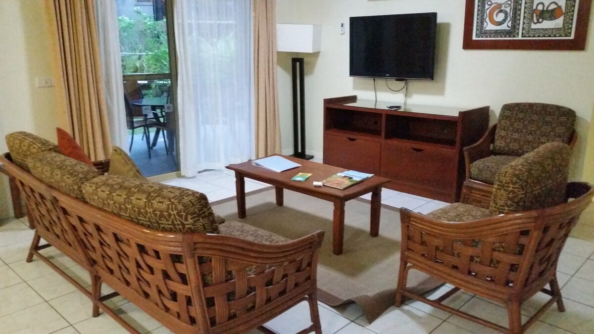 2 yataq otaqlı, bağa mənzərəli mənzil - Denarau Adası, Fici. Bu geniş, 2 yataq otaqlı, bağa mənzərəli mənzildə rahat qonaqlamadan zövq alın. Hamam otağı olan əsas yataq otağı, ikinci yataq otağı və iki nəfərlik açılan divan-çarpayı ilə ailələr/qruplar üçün idealdır. Kondisioner, tam təchiz olunmuş mətbəx, həmçinin paltaryuyan və qurutma maşınından zövq alın. Hovuz barı və yalnız böyüklər üçün hovuza daxil olmaqla, resort hovuzlarından yararlanın. Bula Su Parkına piyada məsafədə və Denarau Qolf Sahəsindən bir neçə dəqiqəlik məsafədə. Bu rahat qonaqlama yerində bütün ailə ilə birlikdə dincəlin.