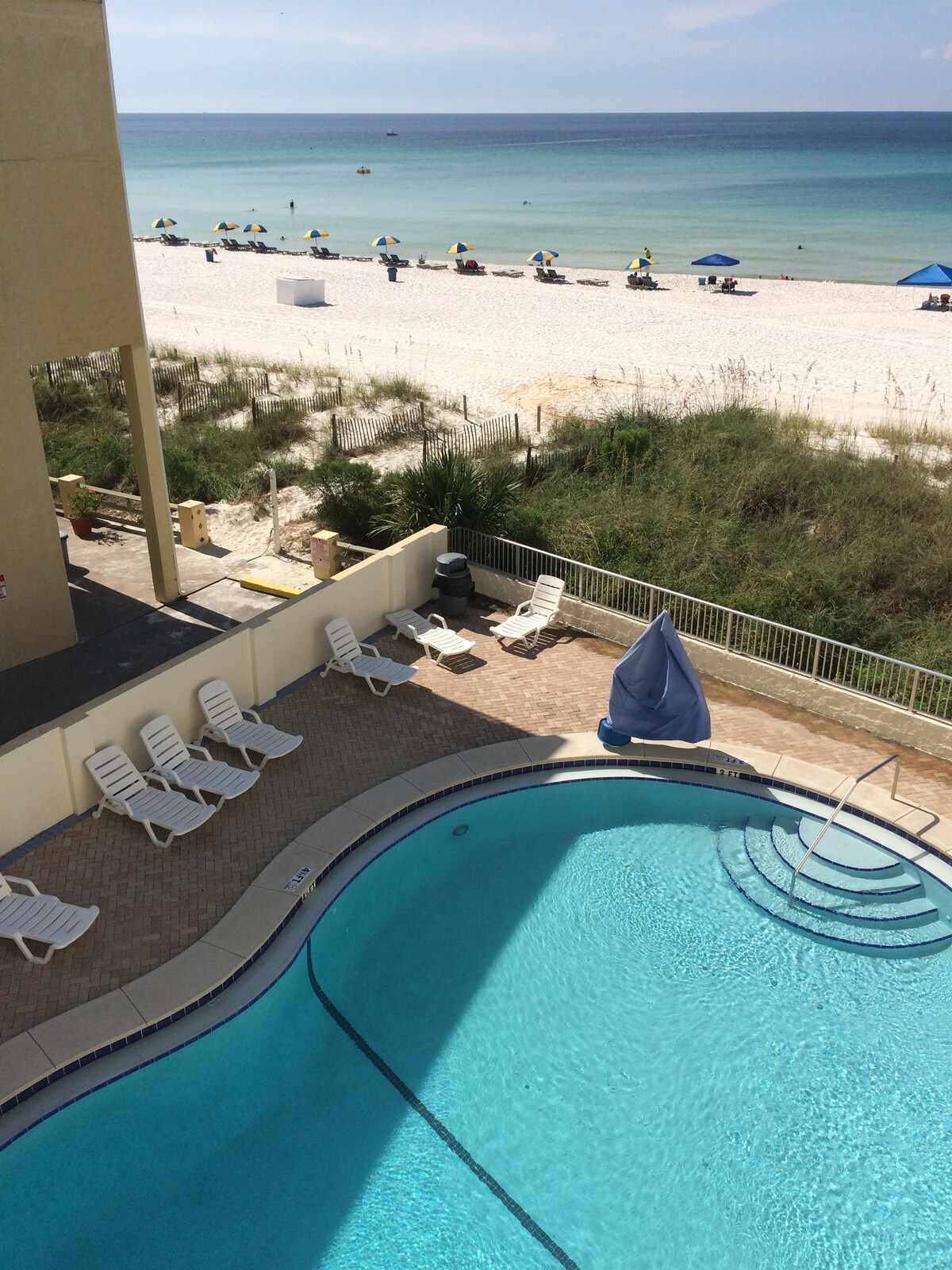 NO EXTRA FEES AFTER BOOKING! Wake up to Gulf views from your PRIVATE BEACHFRONT BALCONY in this charming, low-rise condo. Step directly onto sugar-white sand and emerald waters just outside your door. Enjoy a year-round, seasonally heated pool with an easy walk to Pier Park for dining, shopping, attractions, and nightlife. Looking for different dates or layout? I own 5 condos in this building. Click my host profile, then scroll down to view all of my listings.🌴