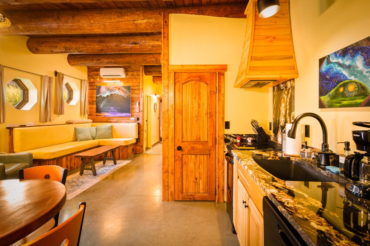 Cakuzilər, valehedici mənzərələr, orta əsrlərə aid müasir yaşayış, yemək və iş sahəsi ilə unikal Earthship eko-homeumuzu kəşf edin. Şəhər və Cemez dağlarında spa/yoqa məkanı və inanılmaz qürublar. Bu məkan həqiqətən ayrı bir dünyadır, lakin şəhərdən cəmi bir neçə dəqiqəlik məsafədədir. Ətrafdakı ardıc və piñon ilə asanlıqla qarışan sakitləşdirici qapalı bağlarımızla davamlı yaşayışı təcrübədən keçirin.