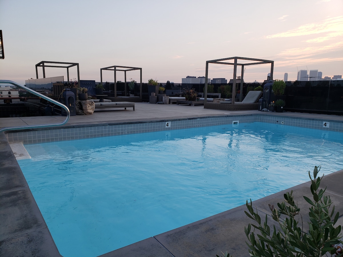 Dünyanın hər yerindən Los-Ancelesə səfər edən insanlara gərgin gəzinti turlarından sonra və ya uzun iş günündən sonra dincəlmək üçün yer təklif etmək istərdik. Ayrıca yataq otağı, ayrıca qonaq otağı və birbaşa hovuzun kənarında vadi təpələrinə və şəhərə açılan gözəl mənzərəsi olan ayrıca hamam otağı olan kiçik bir süita yaratdıq. Sadəcə təpənin üstündəki arxa həyətimizin sonunda bir qədəh şərab için, aya və ulduzlara baxın, hovuzda bir neçə dövrə vurun və ya sadəcə öz qonaq otağınızda filmə baxın.
