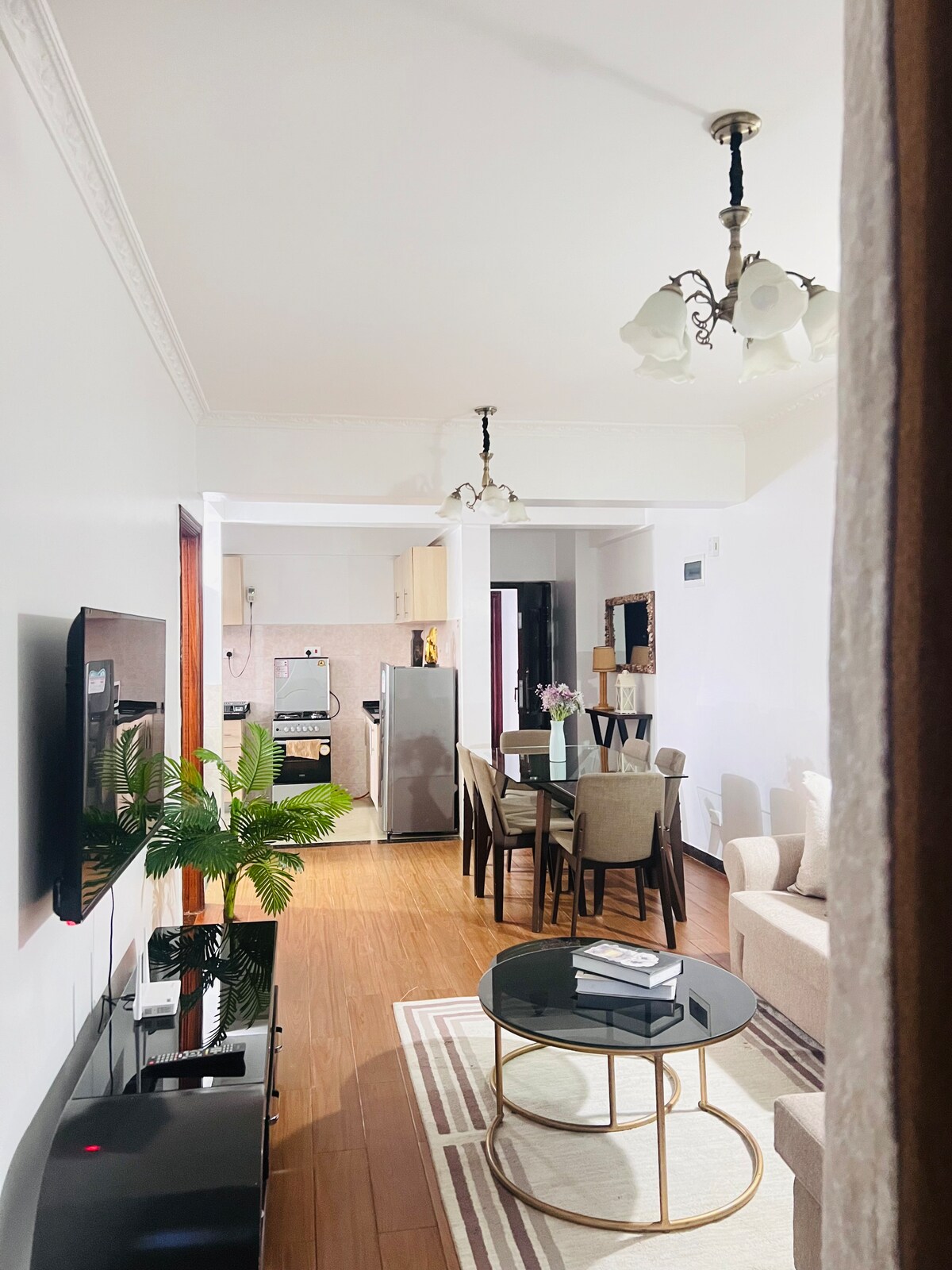 Kilimani mərkəzində sakit, dəbli bir məkan. Bu düşünülmüş dizaynlı mənzildə isti torpaq tonları, yumşaq işıqlandırma və təbii teksturalar bir araya gələrək rahat və müasir bir məkan yaradır. Qırmızımtıl tonlu divanı və seçilmiş sənət əsərləri ilə günəş işığı düşən qonaq otağında dincəlin, zövqlü yemək sahəsində yeməklərin dadına baxın və ya tam təchiz olunmuş mətbəxdə yemək bişirin. Gecəni sakit yataq otağında dincəlin. Rahatlıq, üslub və rahatlıq axtaran tək səyahətçilər, cütlüklər və ya ailələr üçün mükəmməldir.