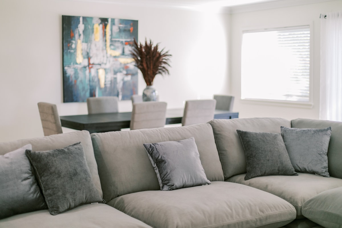 Lonq-Biçdəki dəbli istirahət məkanınıza xoş gəlmisiniz! Çimərlikdən az məsafədə, Lonq-Biç və Belmont sahillərinə yaxın məsafədə yerləşən bu gözəl dizaynlı əmlakdan zövq alın. Ailələr, dostlar və ya işgüzar səyahətçilər üçün ideal olan ev komfort, rahatlıq və üslub təklif edir. 3 Yataq otağı və 2,5 Hamam: İki çarpayı və daha çoxu ilə 8-ə qədər yatır. Xüsusi Ofis Məkanı: Uzaqdan iş üçün idealdır. Boks zalı: Fitnes üçün tam təchiz olunub. Veranda: Açıq havada rahat oturma. Camaşırxana ləvazimatları