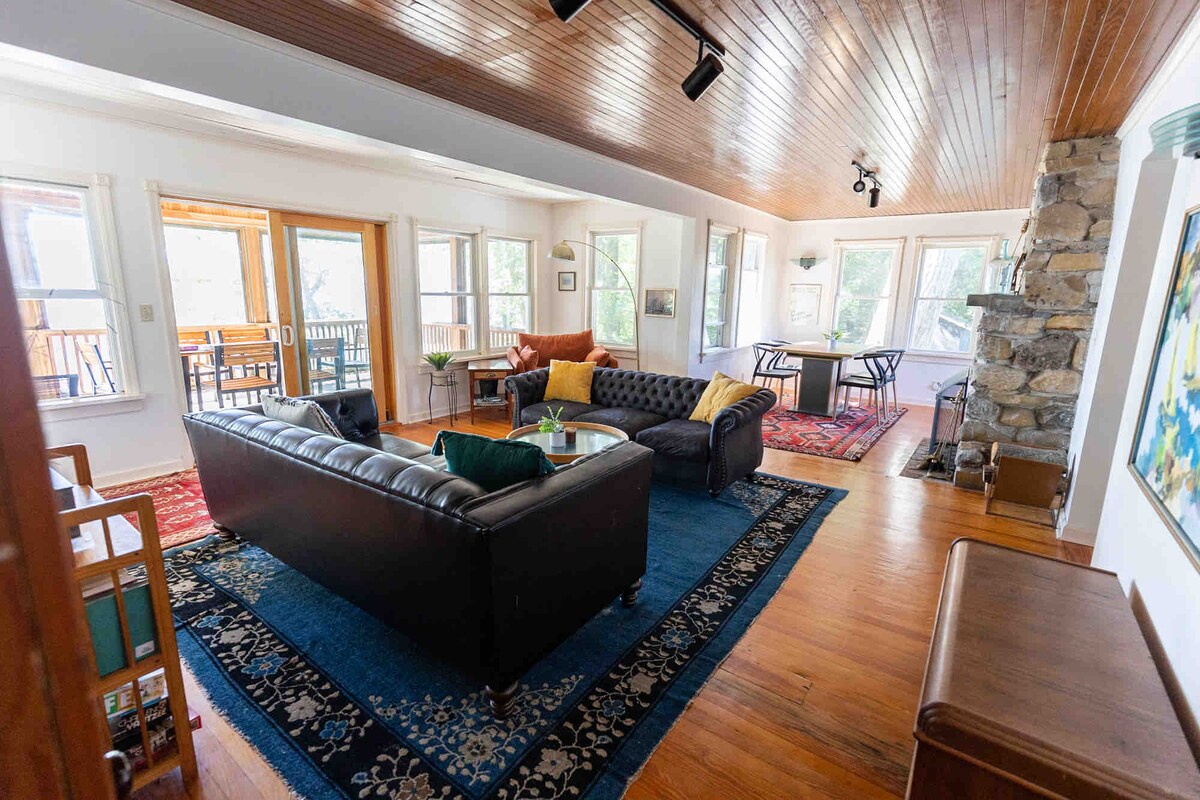 A unique retreat meticulously crafted for resting and recharging after exploring in our beautiful Adirondack Wilderness. Flooded with natural light, every room offers calming frames of nature. Watch the sun peak through the forest and rise over the mountains through expansive windows. Ascend the levels of the house, each revealing more landscape. Experience a designer woodfired traditional Finnish sauna & totally recharge while embracing our harsh Adirondack weather. We hope you love it here.